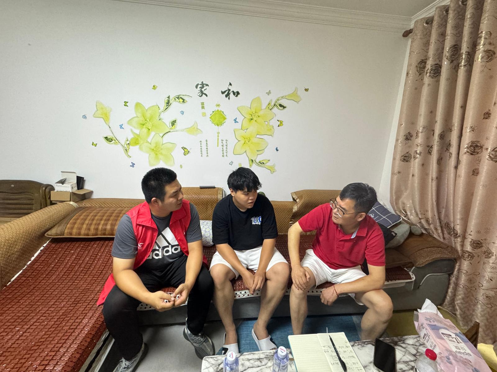劳动报记者胡玉荣(右)和奉贤区南桥镇就业援助员朱超(左)在未就业大学生家里走访。唐唐摄影