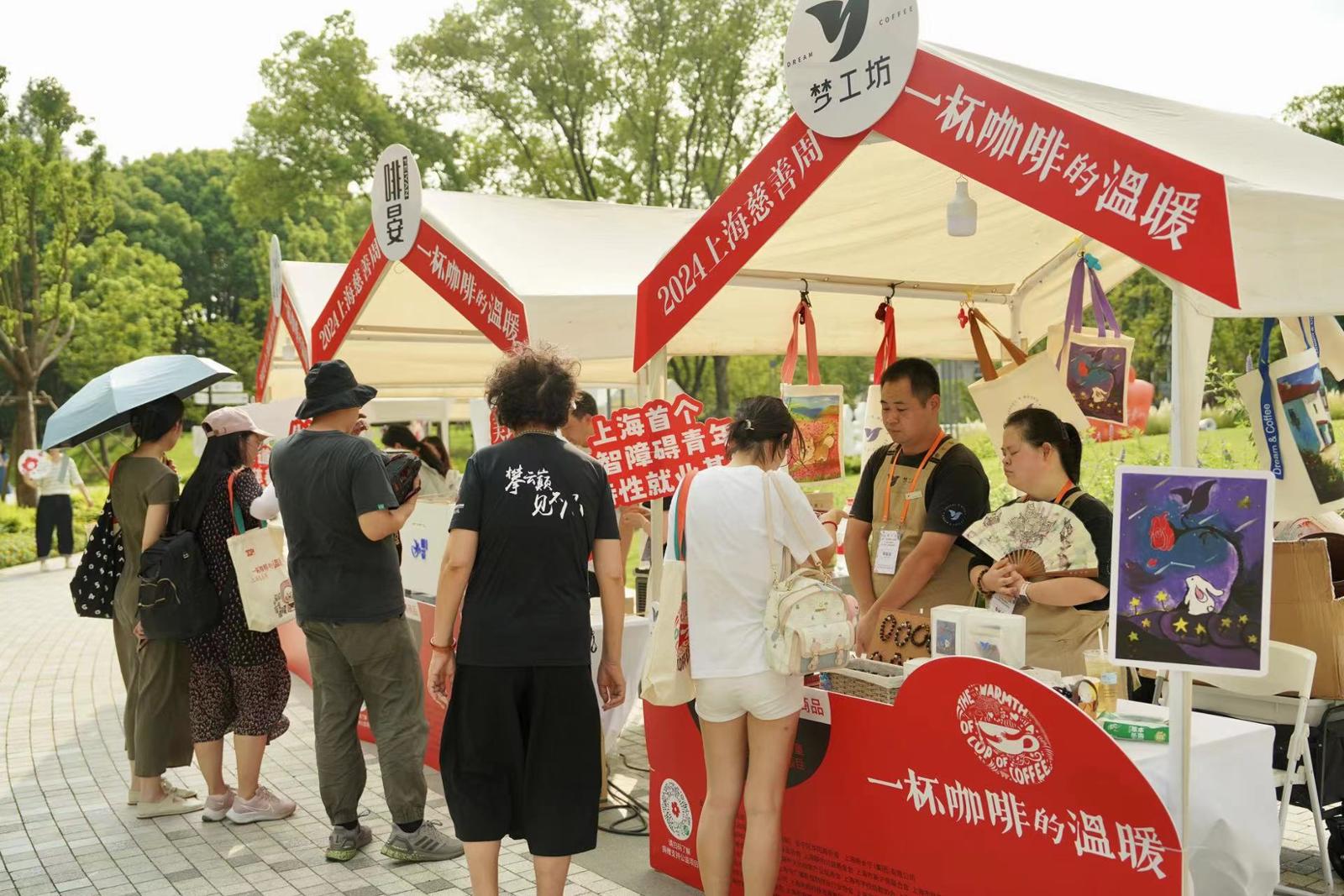 今年首次参与慈善周活动的梦工坊咖啡吧,是一家以自闭症、唐氏综合症等心智障碍人士为主要从业人员的公益性咖啡吧,也是上海首个心智障碍青年支持性就业基地。当天他们带来了由梦工坊自闭症、唐氏员工创作的周边产品,如咖啡豆手串、帆布袋、卡通保温杯等。咖啡师沈程告诉记者:“很高兴能够能参加这次活动,过去都是别人在帮助我们,这次也能通过我们的努力来帮助其他人了。”