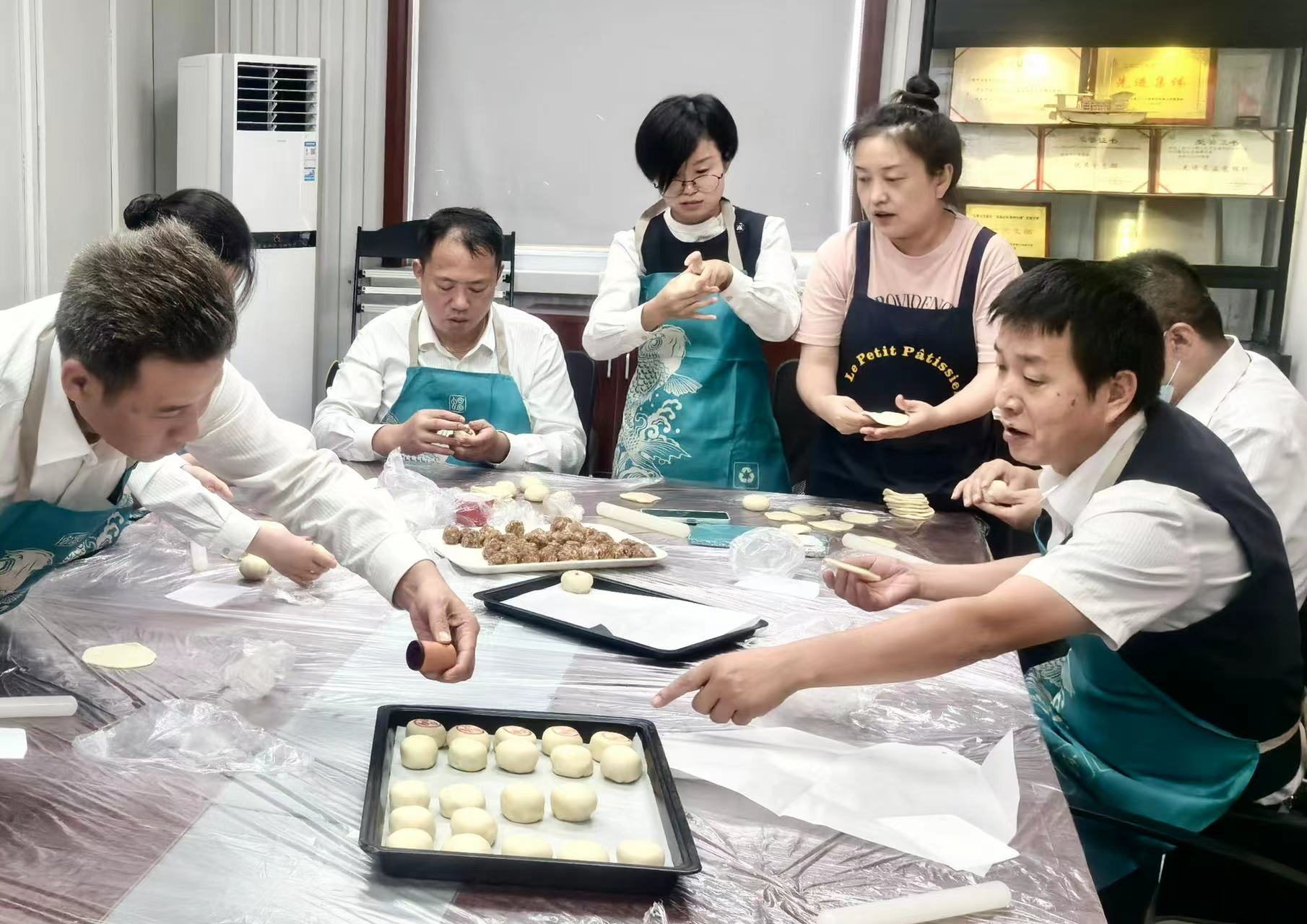 随后,车队职工和社区的居民卷起袖子,带上手套,开始月饼制作。制作月饼完成后,随后又将这些月饼进行包装,送到正在辛勤工作的职工们手中,让他们度过暖意浓浓的“月饼节”。