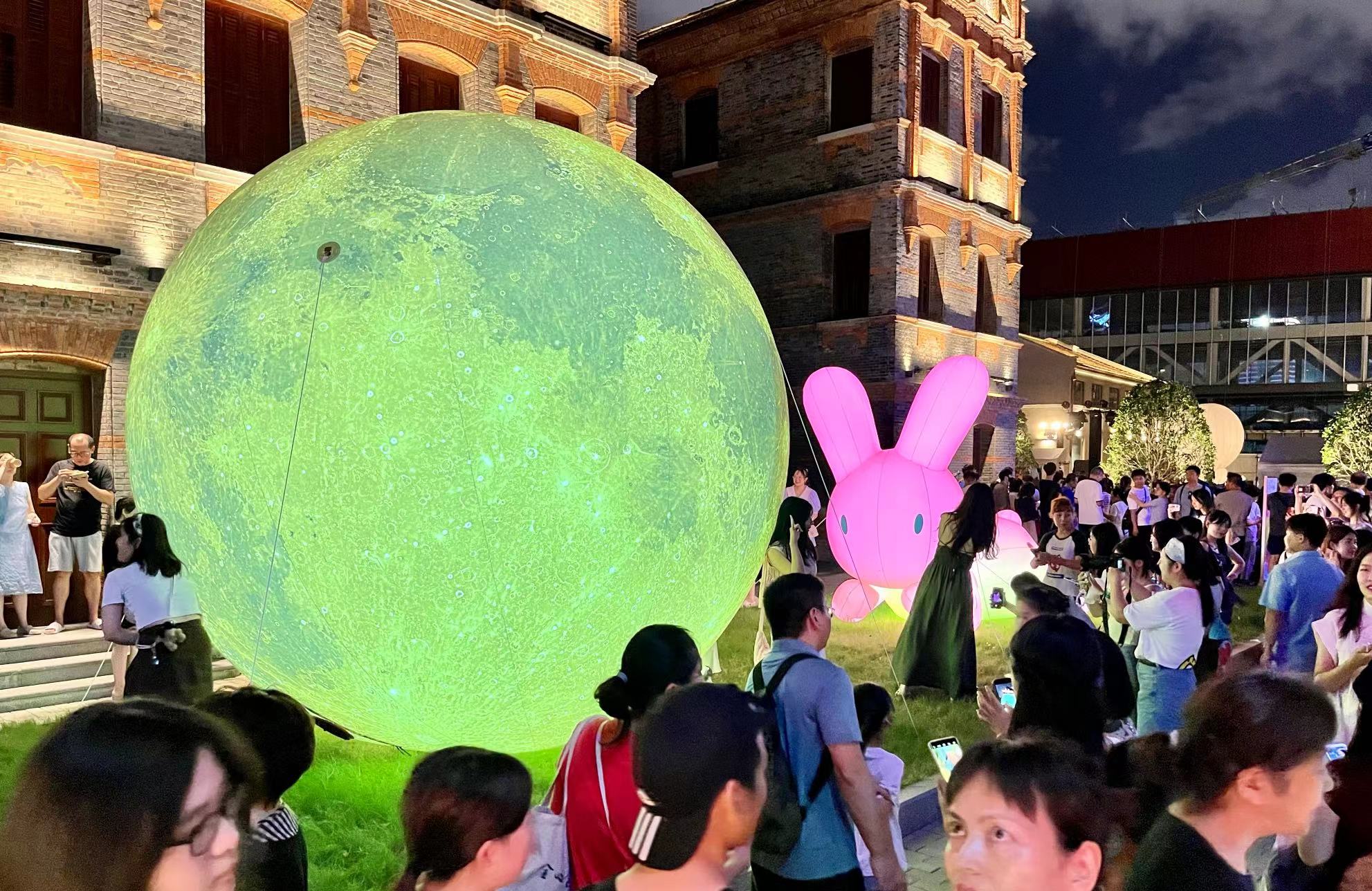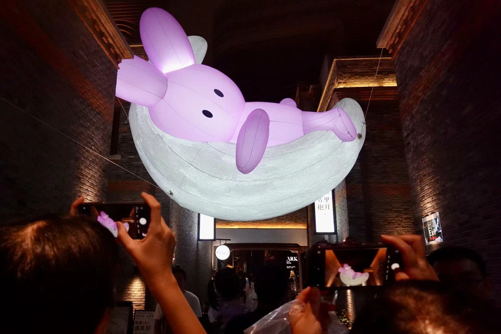9月2日“弄月·中西”海派中秋灯会亮灯以来,8组名为百舸争月、筑梦凝月、浮生闲月、震世探月、创世启月、探弄窥月、弄里抱月、琼楼眺月的巨型花样萌兔装置争相“跃”入滨港商业中心今潮8弄。千姿百态的萌兔花灯吸引市民游客与外国友人纷至沓来。近日,“震世探月”兔隆重登场,完成了今潮8弄今年海派中秋灯会的最后一块拼图。