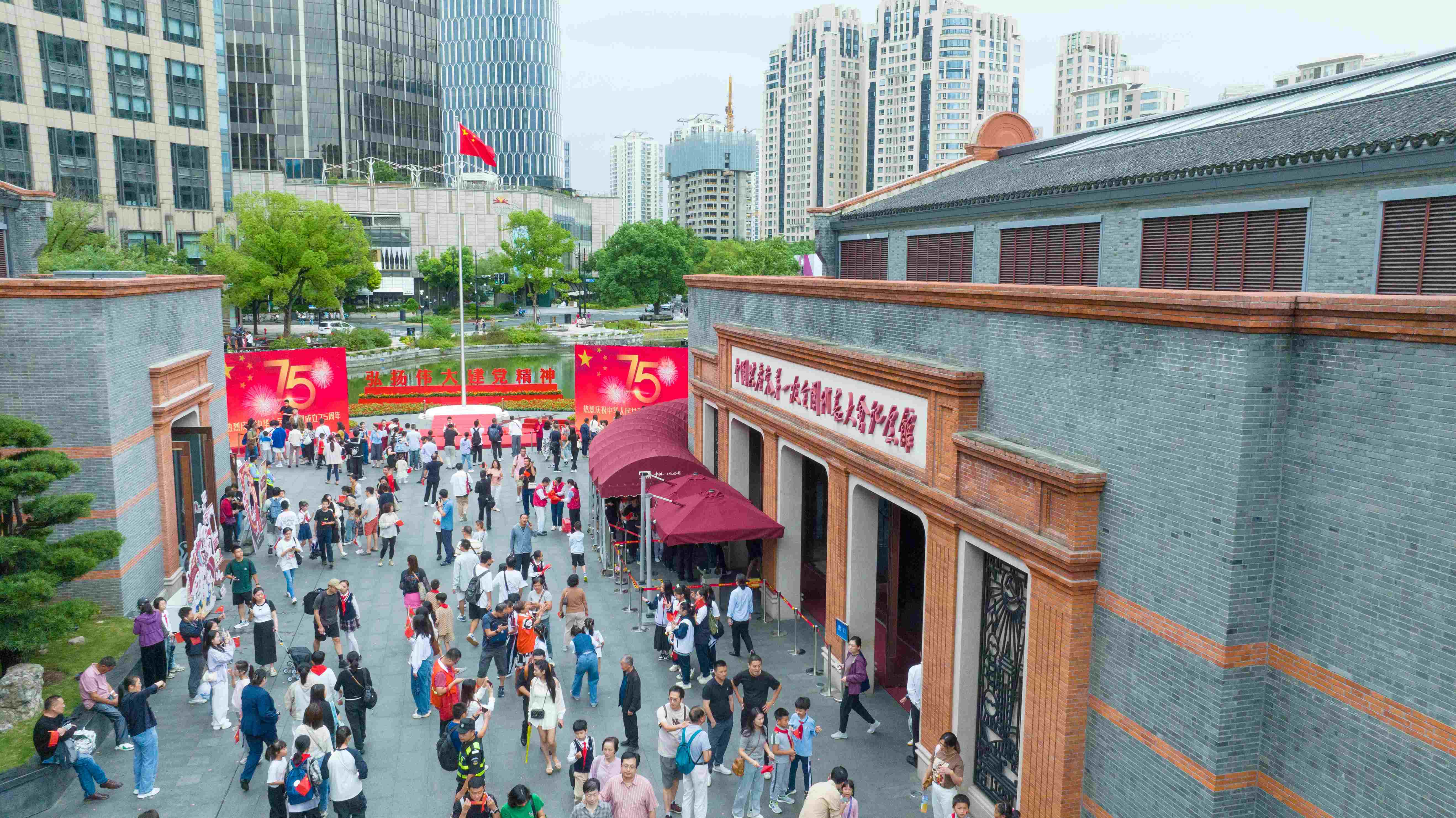 头图为10月1日,五星红旗在一大广场飘扬。中共一大纪念馆供图