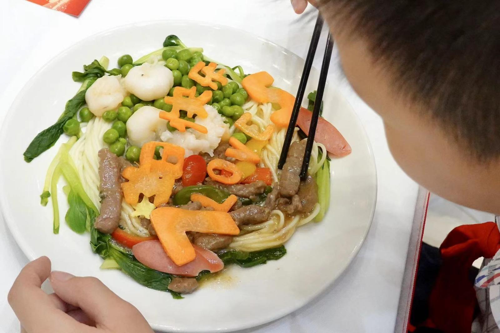 图为参加活动的小朋友做的“国庆面”。劳动报记者贡俊祺 摄影