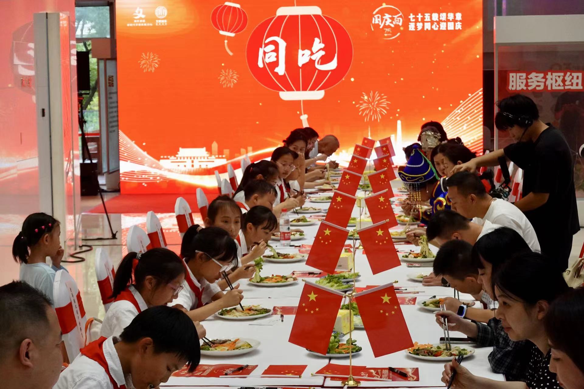 图为活动现场“同吃国庆面”。劳动报记者贡俊祺 摄影
