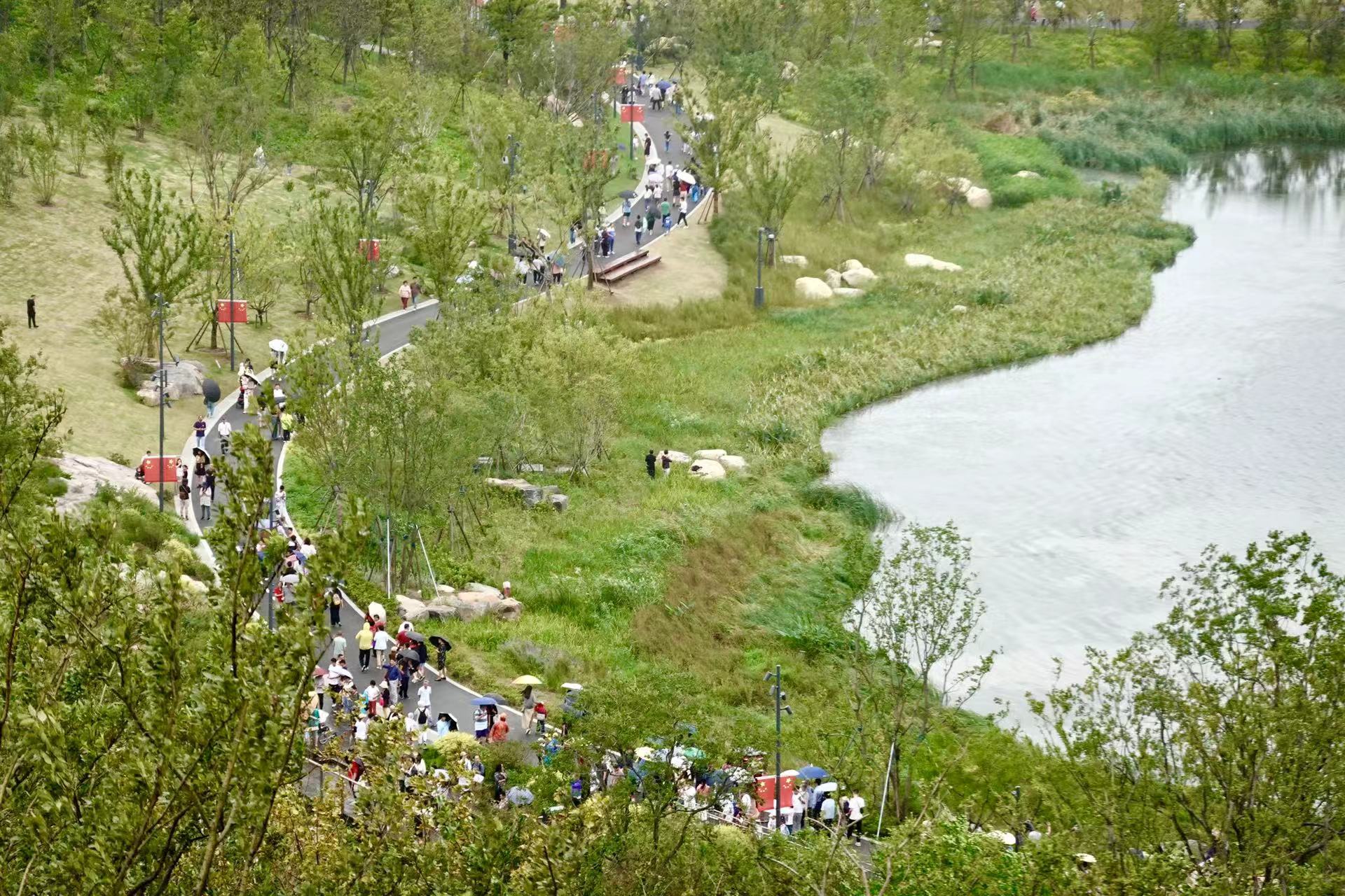 “大概因为要提前一天预约,山上人流量控制得还可以的,山很好爬,一会就上来了。”当天,家住上南路的徐先生带着一家老小来到了世博文化公园南区,首先便是来爬这双子山。“我可以说是看着这个山慢慢造起来的,每天上下班路过,一直想着造好后要来看看,这不趁着国庆长假,第一天就带着老人孩子一起来了。”