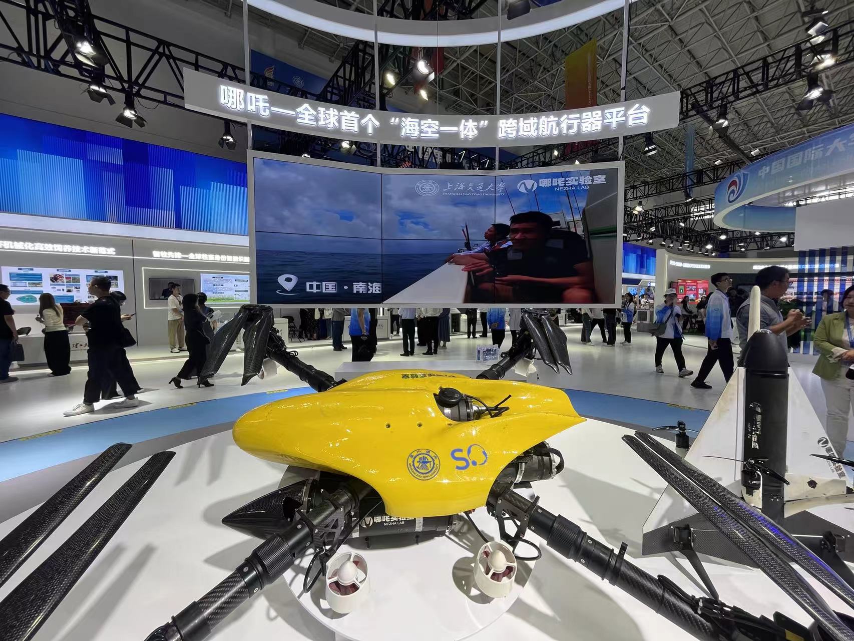 上海交通大学参赛项目“哪吒”系列海空跨域无人航行器。劳动报记者 贡俊祺 摄影