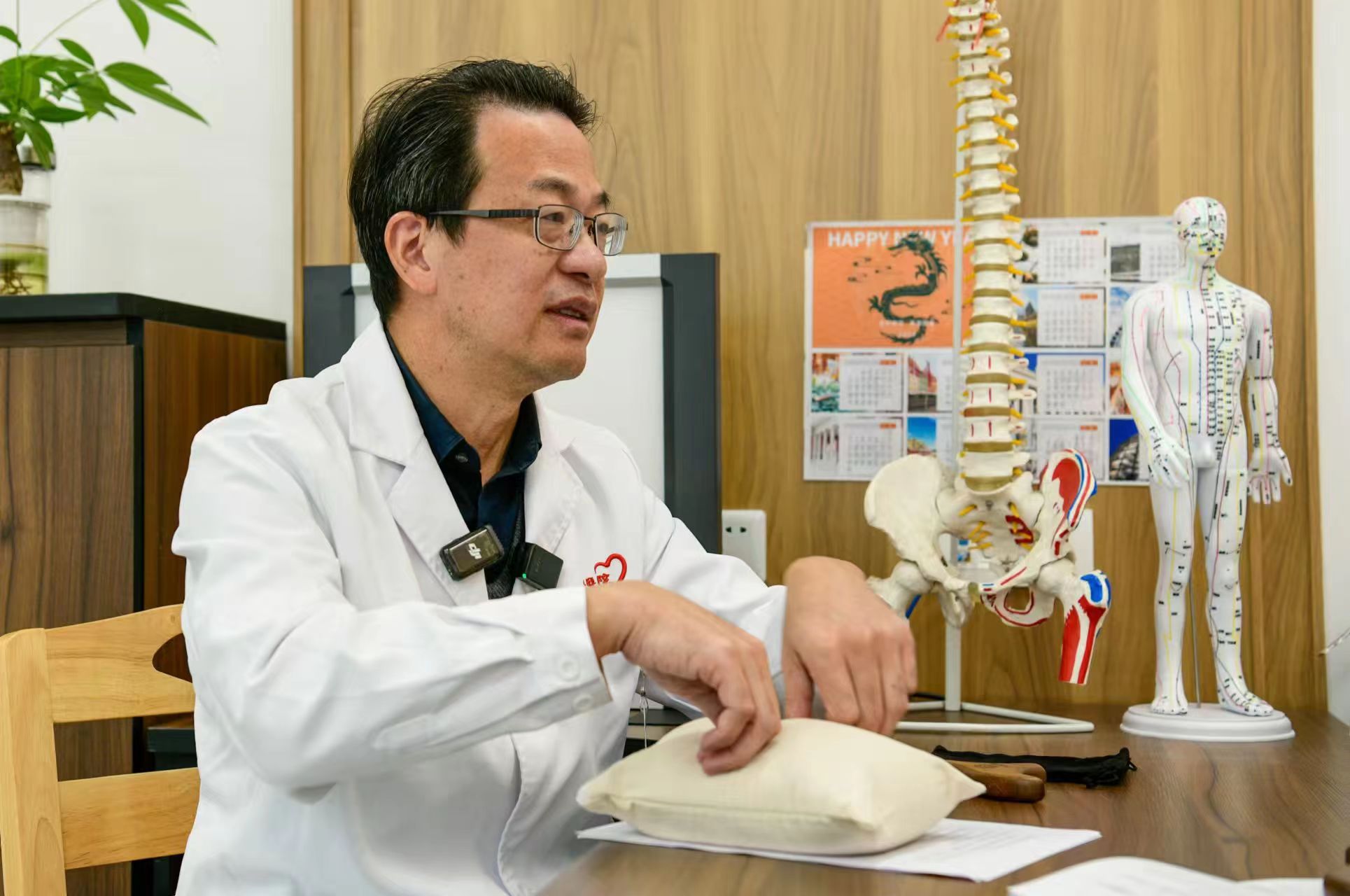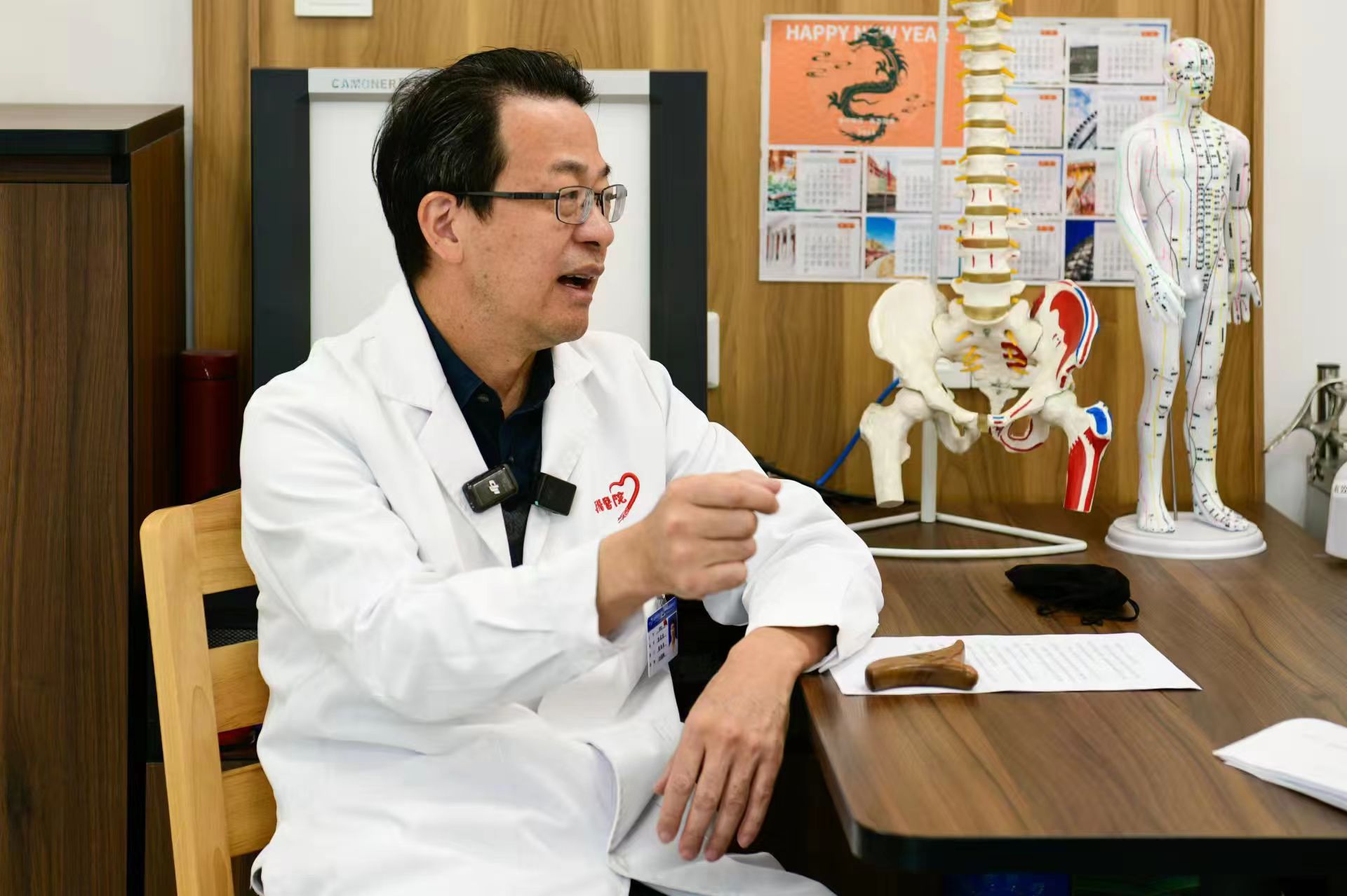 岳阳医院推拿科主任孙武权医生接受采访。劳动报记者颜筱依 摄影