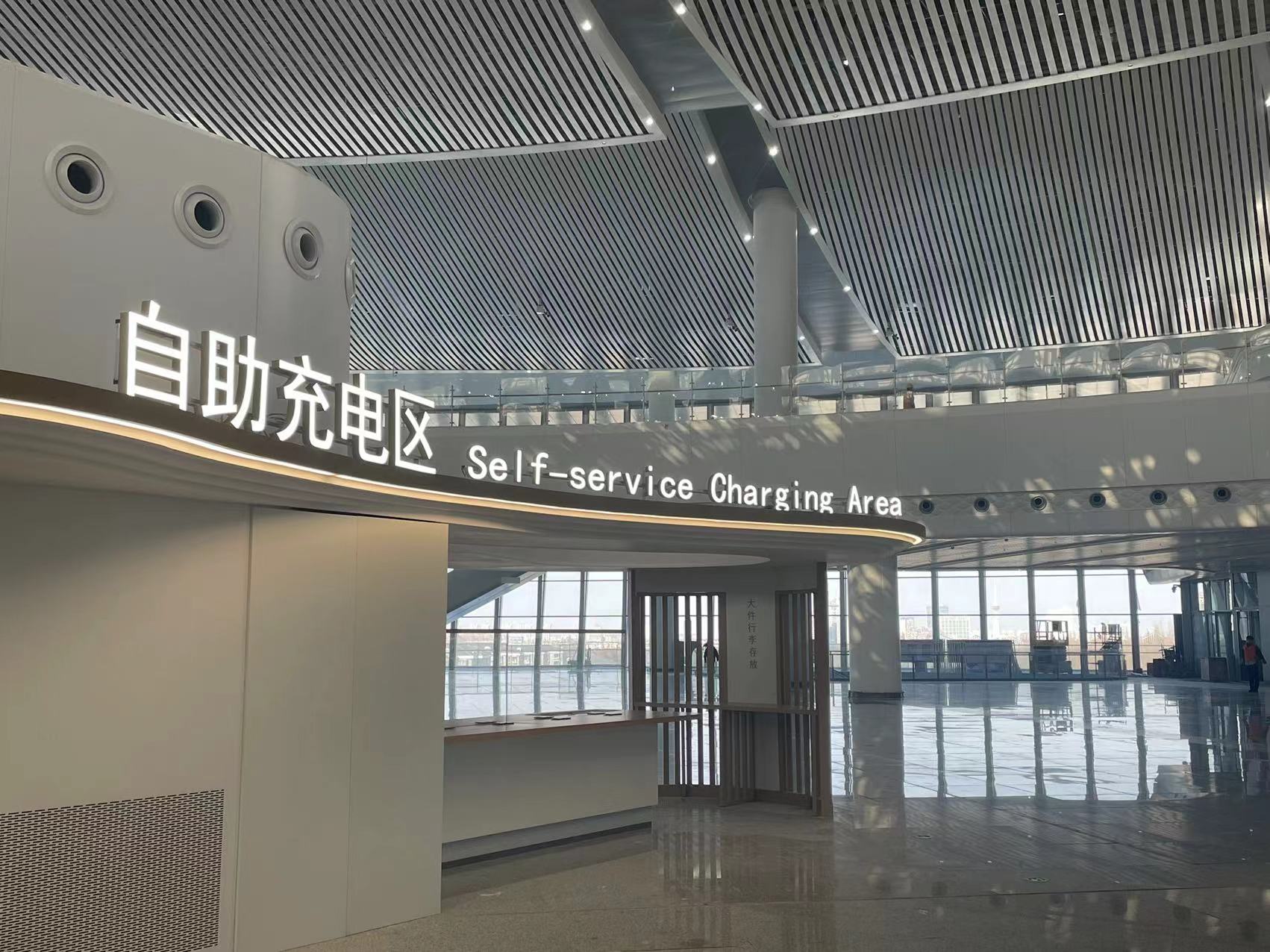 候车厅配备自助充电区。劳动报记者 包璐影 摄影