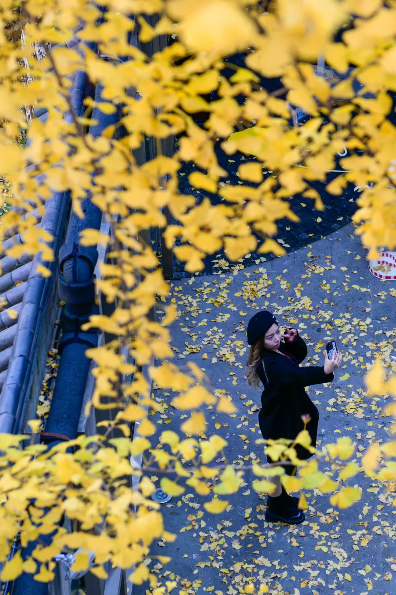 金黄银杏叶飘落,处处弥漫着浪漫气息。劳动报记者 颜筱依 摄影