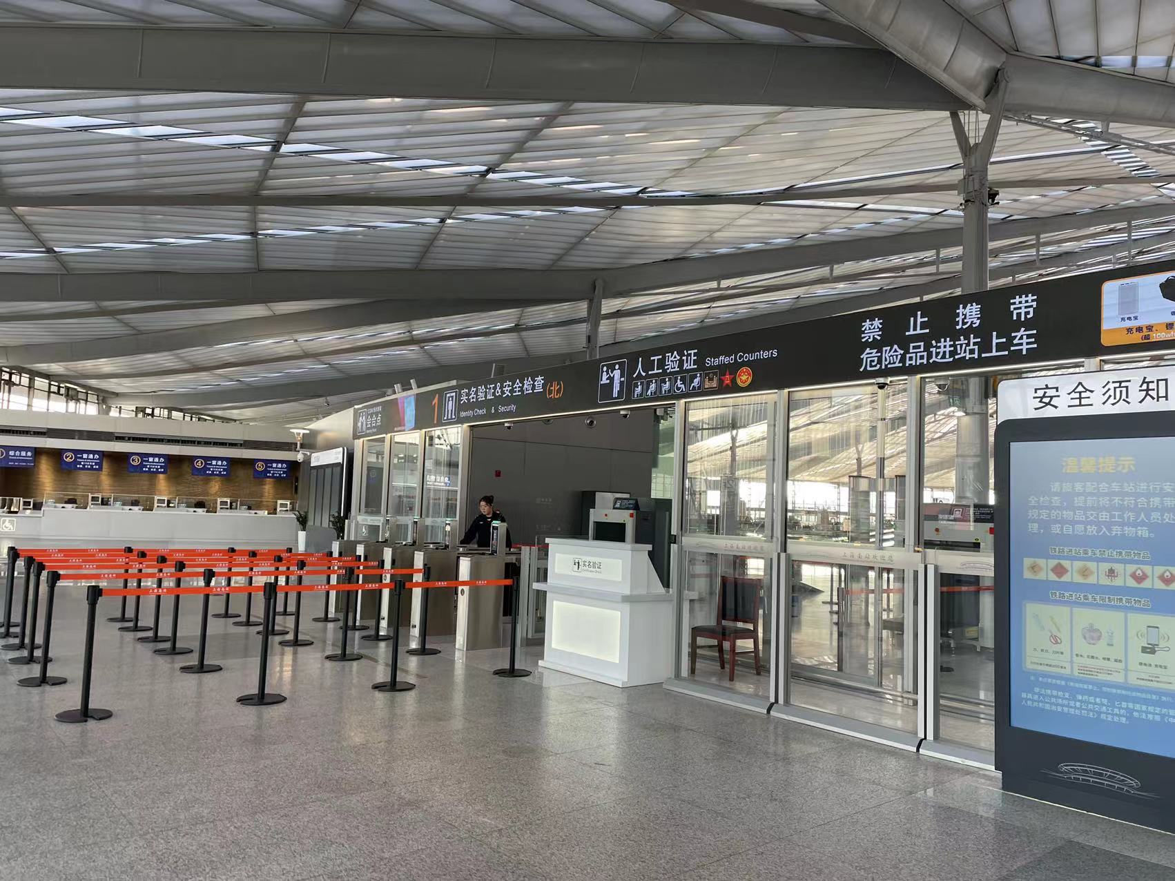 进站口实名验证闸机、安检仪等都增加了许多。劳动报记者 包璐影 摄影