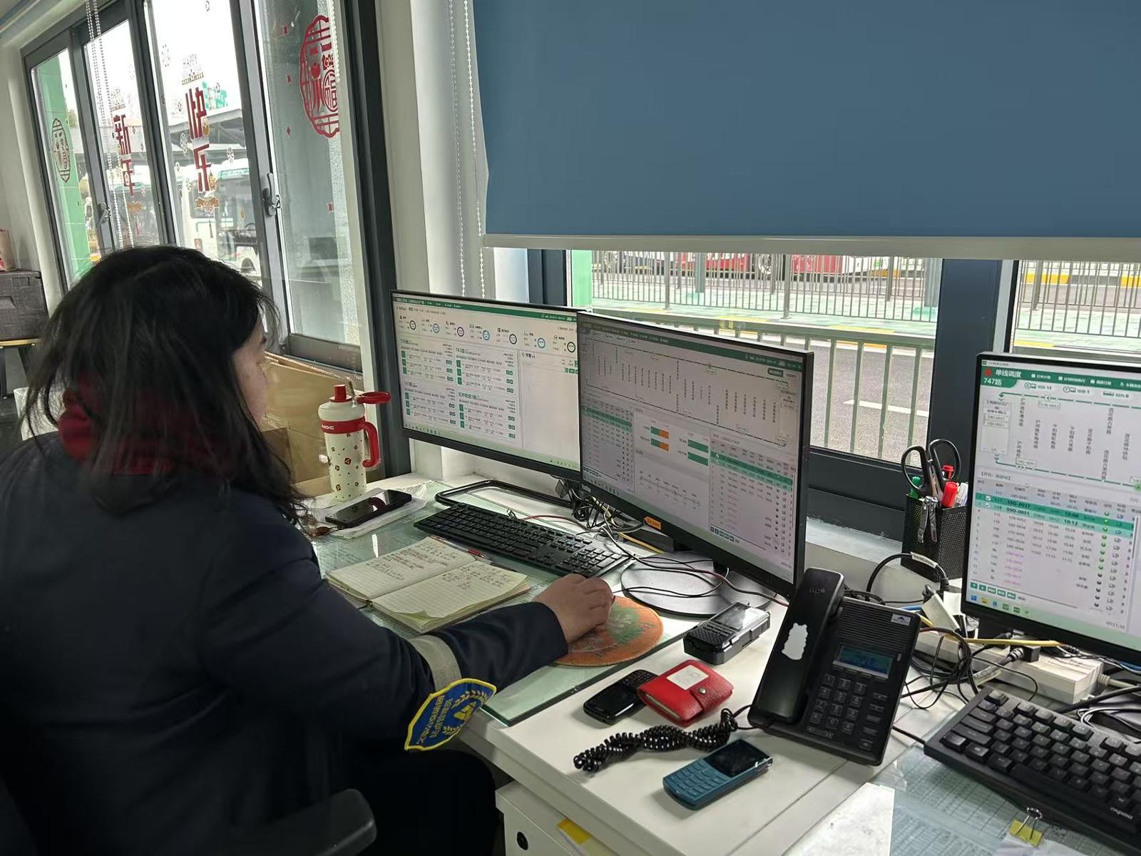 调度员在查看车辆实时运营情况。劳动报记者 胡玉荣 摄影
