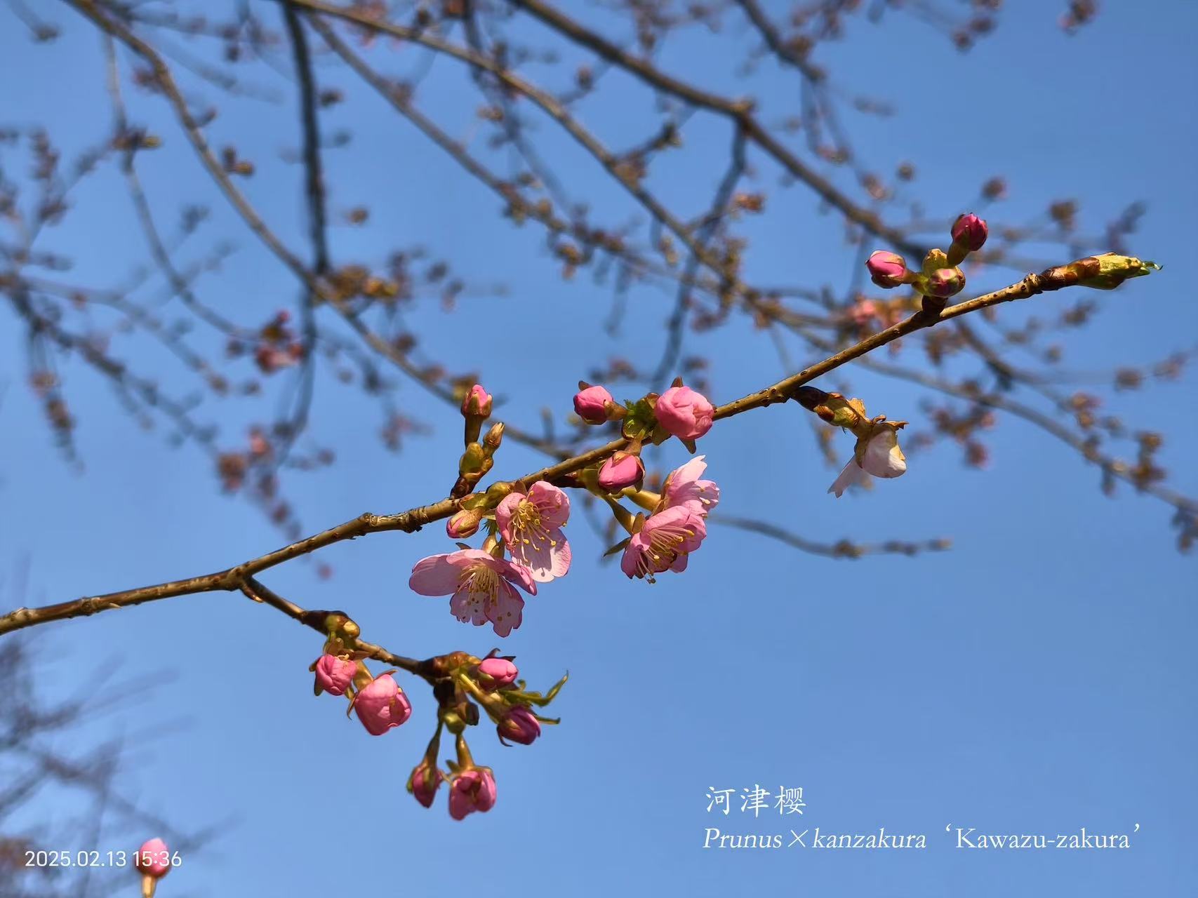 据悉,最先开放的樱花主要为早樱家族里的寒樱和河津樱品种。寒樱几乎与梅花同期开放,素有“报春樱花”的美称。