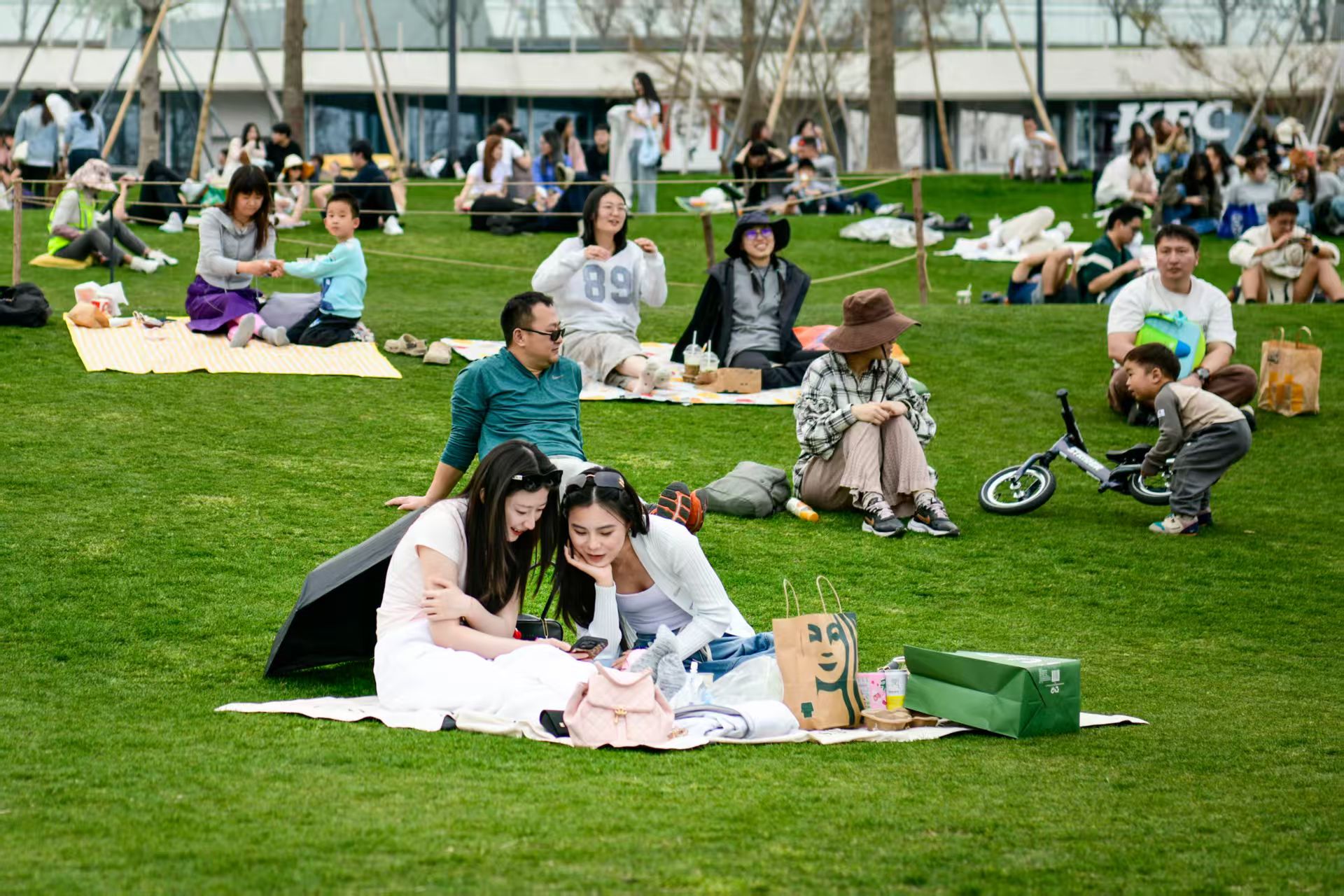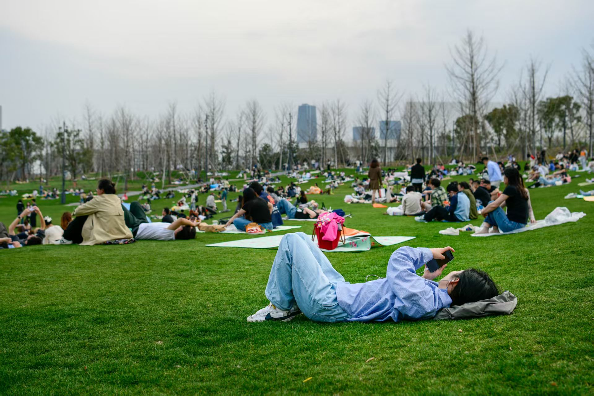 上周末,世博文化公园内,被誉为“小阿勒泰”的音乐之林草坪上几乎躺满了人。这个“网红公园”成为大伙“孵太阳”、露营、赏春光的好去处。