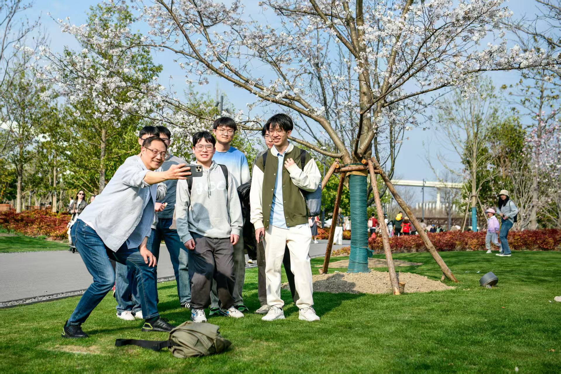 市民在公园内欣赏春日美景并留影。劳动报记者 颜筱依 摄影