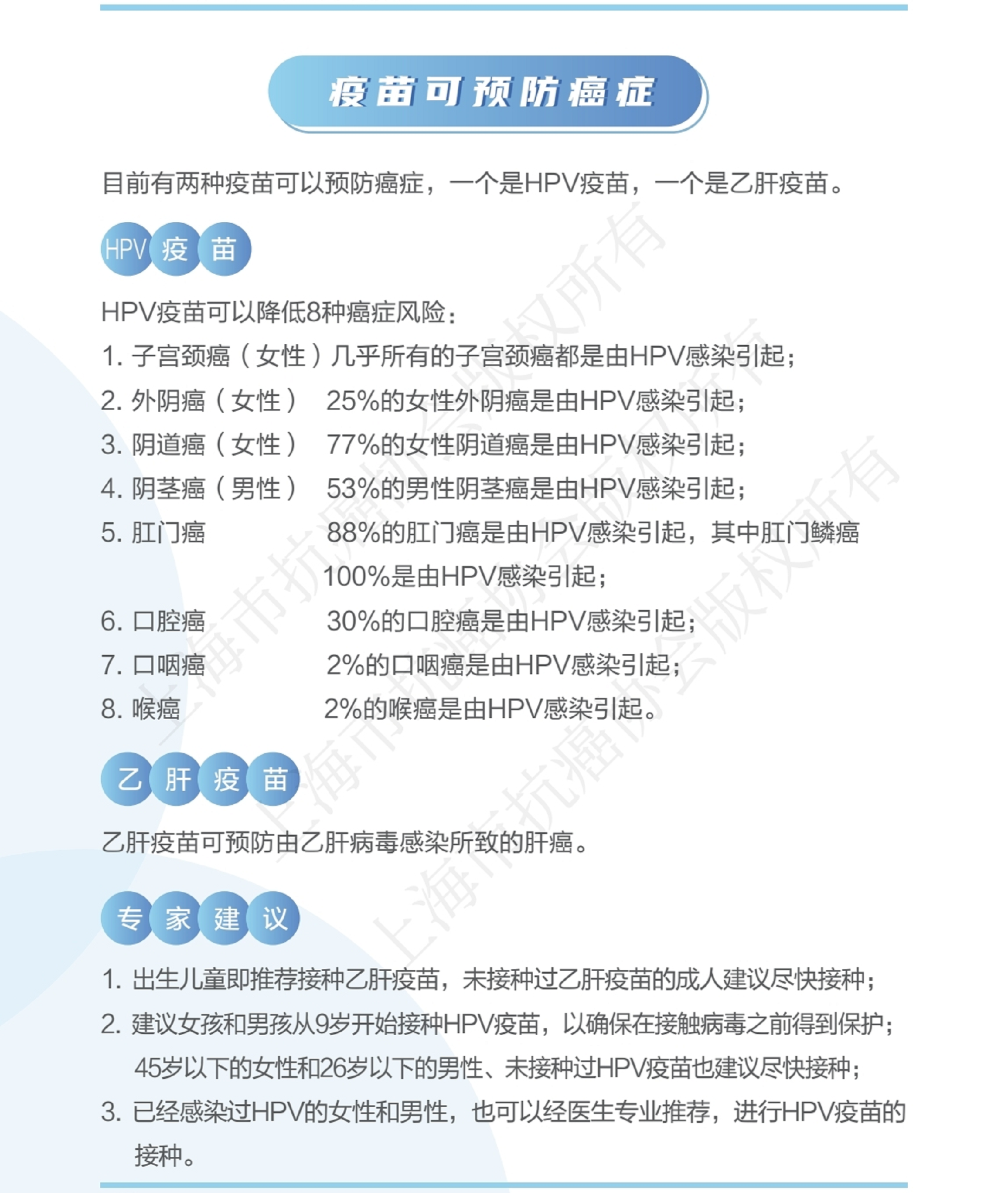 疫苗可预防癌症:HPV疫苗新增9-26岁男性接种,男女性双向保护更易形成“群体免疫屏障”,还可预防更多的致癌型别和癌种(阴茎癌、肛门癌及口咽癌等)。男性接种,保护自己,保护另一半,保护全社会。