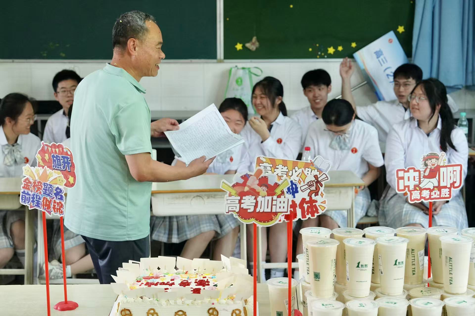 高三这一年里,不管是老师还是同学,都在倒计时,默默准备告别。“我怕太煽情会影响孩子们,但想到要送走他们,眼泪就止不住了。”已经有20多年教龄还会被同学们喊“小赵”、“华华”的班主任赵晔华有些哽咽,“我们准备了鲜花、蛋糕、可乐,如果有一天他们回忆起高中,肯定不是知识点,而是那一个个闪光的瞬间。”4月份,赵老师接到调令,要到罗店中学担任副校长。“6月9日,孩子们考完我就走了,一直没告诉他们,怕影响他们心情。”临别时刻,赵老师给孩子们送上深深的祝福,她说:“我希望我的孩子们能够站在顶峰熠熠发光,但更希望还是他们能够健康快乐,心怀美好。”
