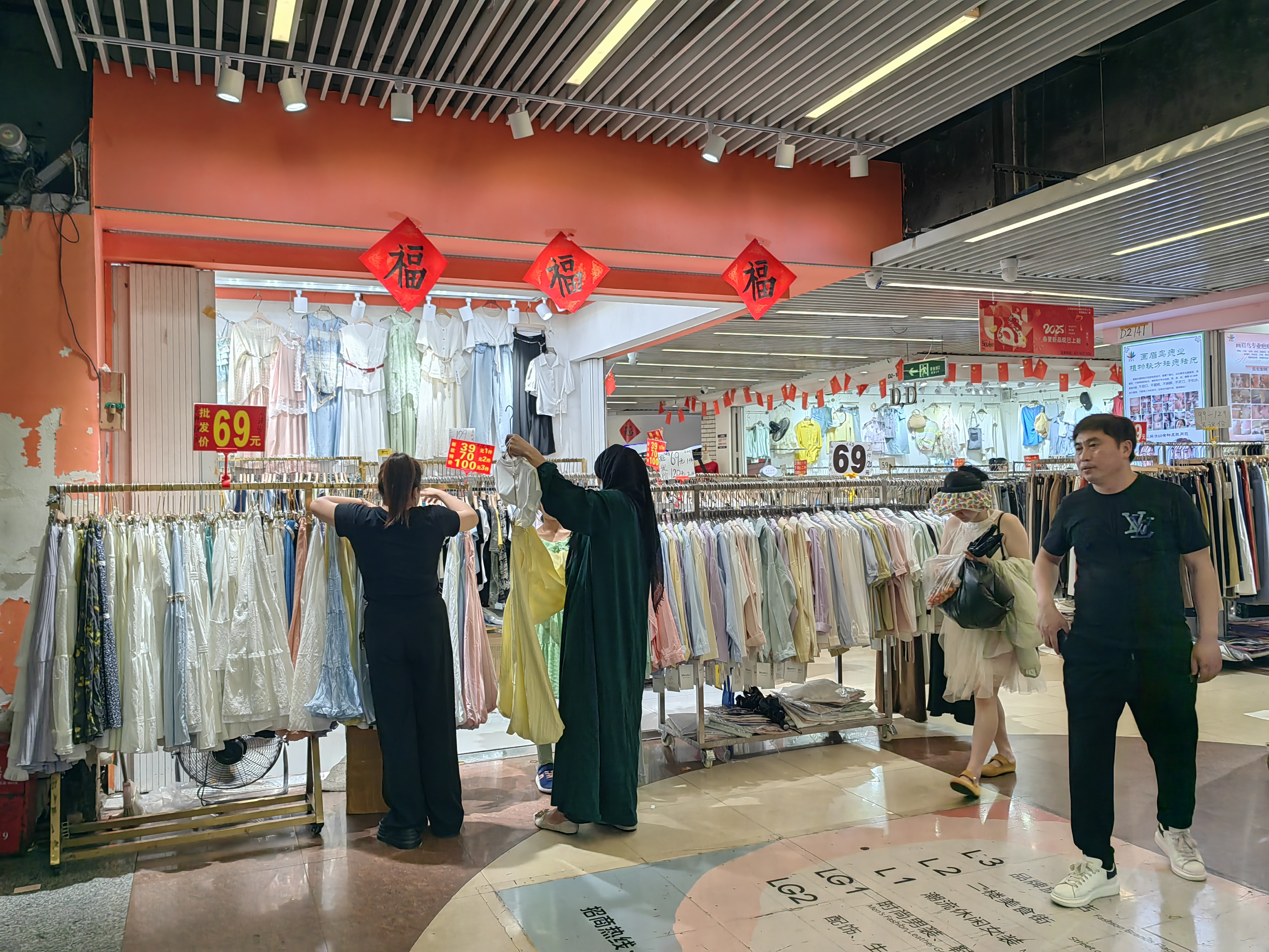 小龚在服装批发市场看到有外国游客在挑选衣服。受访者供图