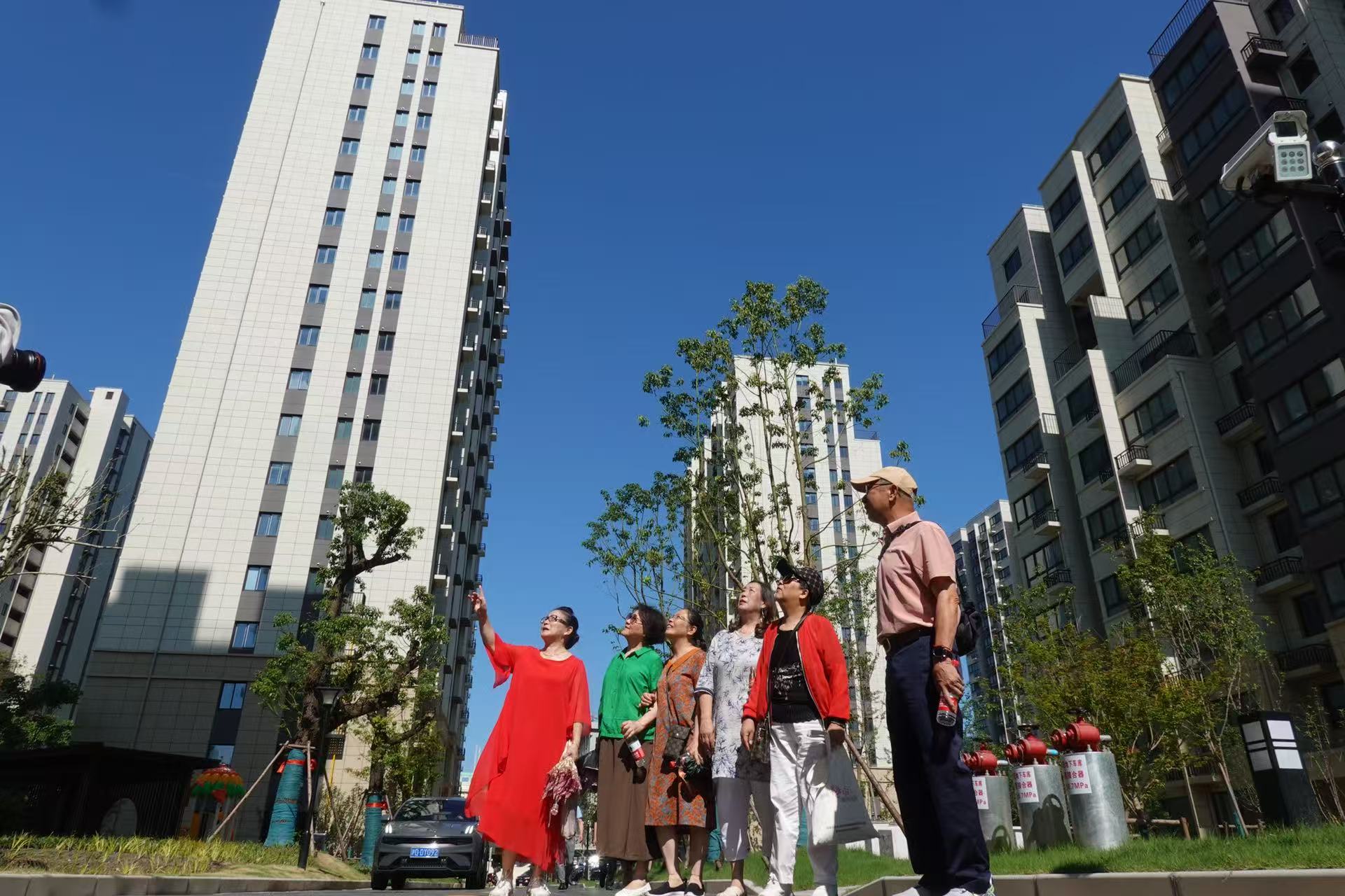 居民站在彭一小区,喜气洋洋看着新家。劳动报记者 贡俊祺 摄影