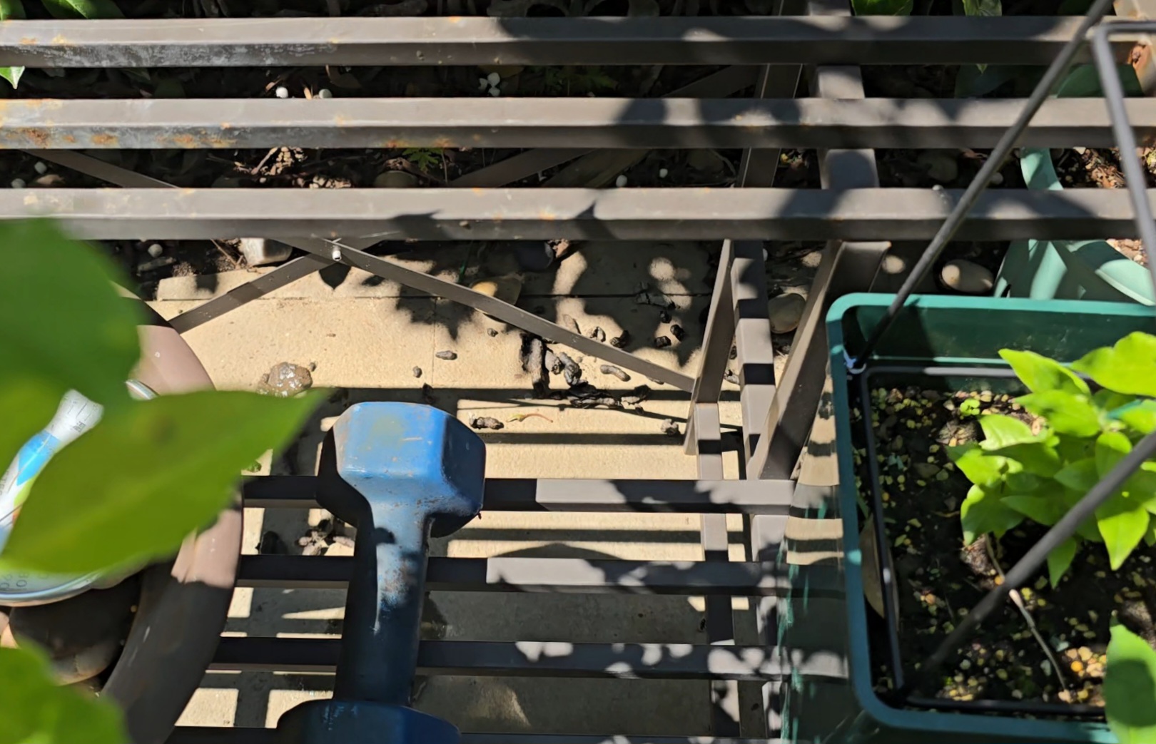 从上午9点到11点多的2个小时里,记者在魏先生家及周边并没有等到貉群造访,但在他家院子靠近栅栏的花架下,有貉的排泄物,苍蝇在附近打转,还没凑近就能闻到臭味。“这是它们早上4点多留下的。”魏先生的妻子林女士和记者一起查看早晨的监控后,看到了貉群的踪迹。随后,她拉过水管将粪便冲掉,并用消毒水清洗地面,“我们也不敢碰,万一有什么细菌病毒呢?”