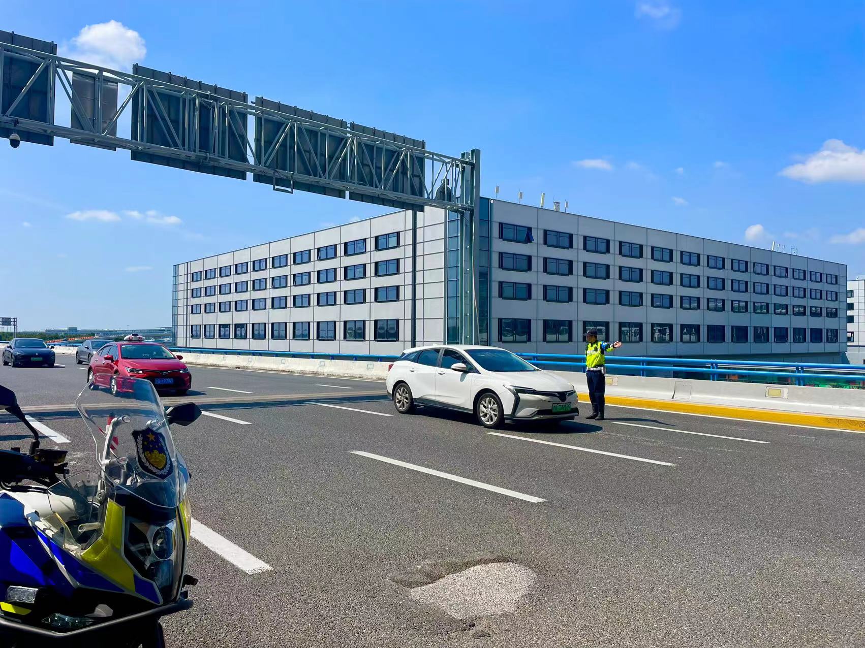 暑运期间,机场交警全力保障车流顺利出入机场。劳动报记者 包璐影 摄影
