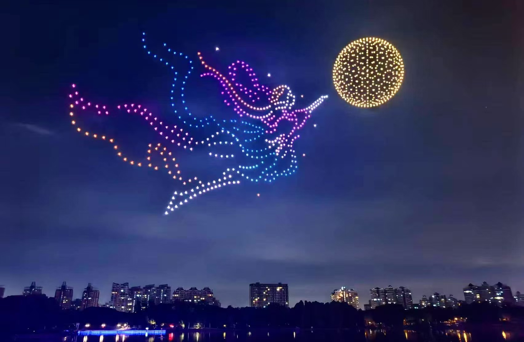 无人机灯光秀上演。劳动报记者贡俊祺 摄影