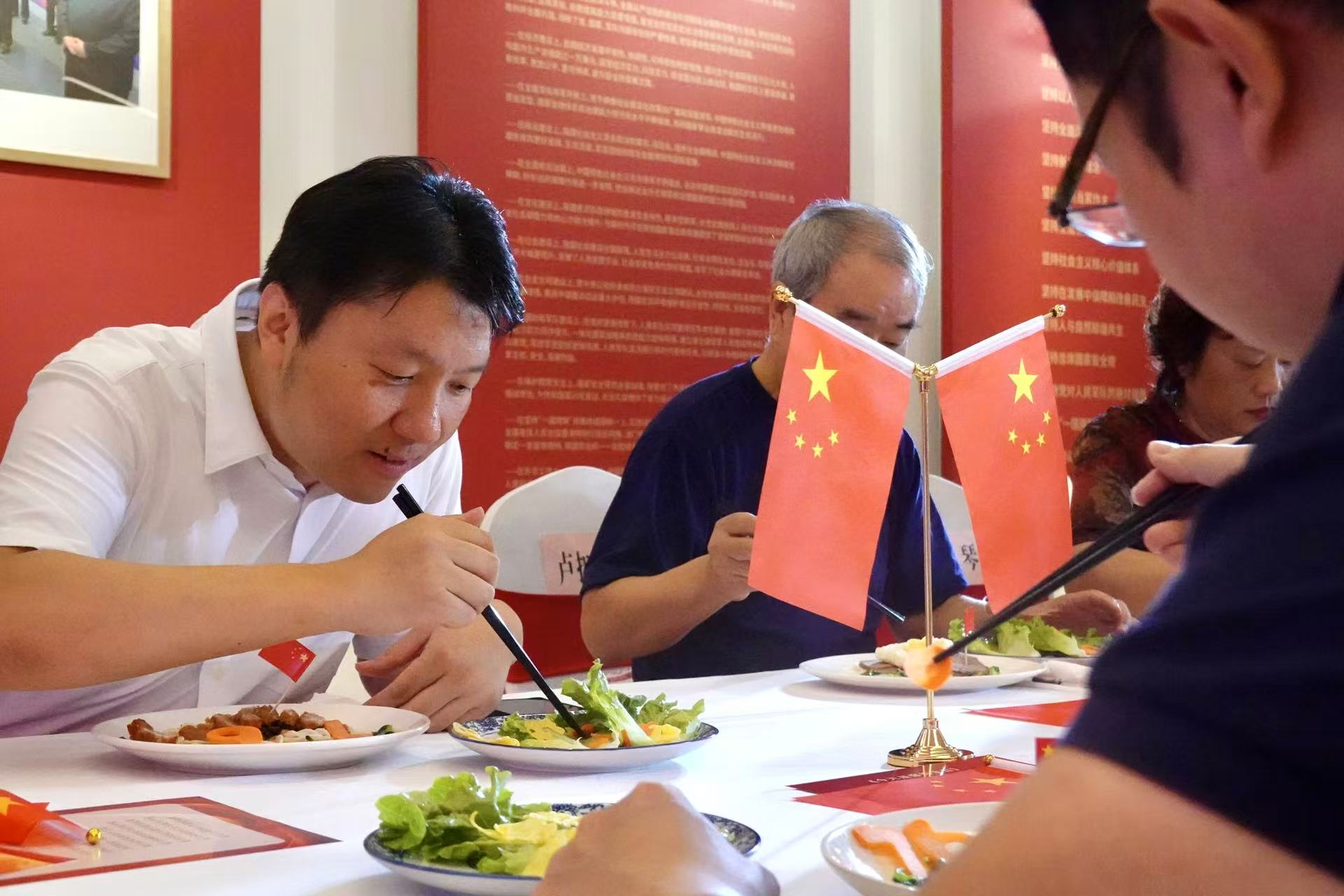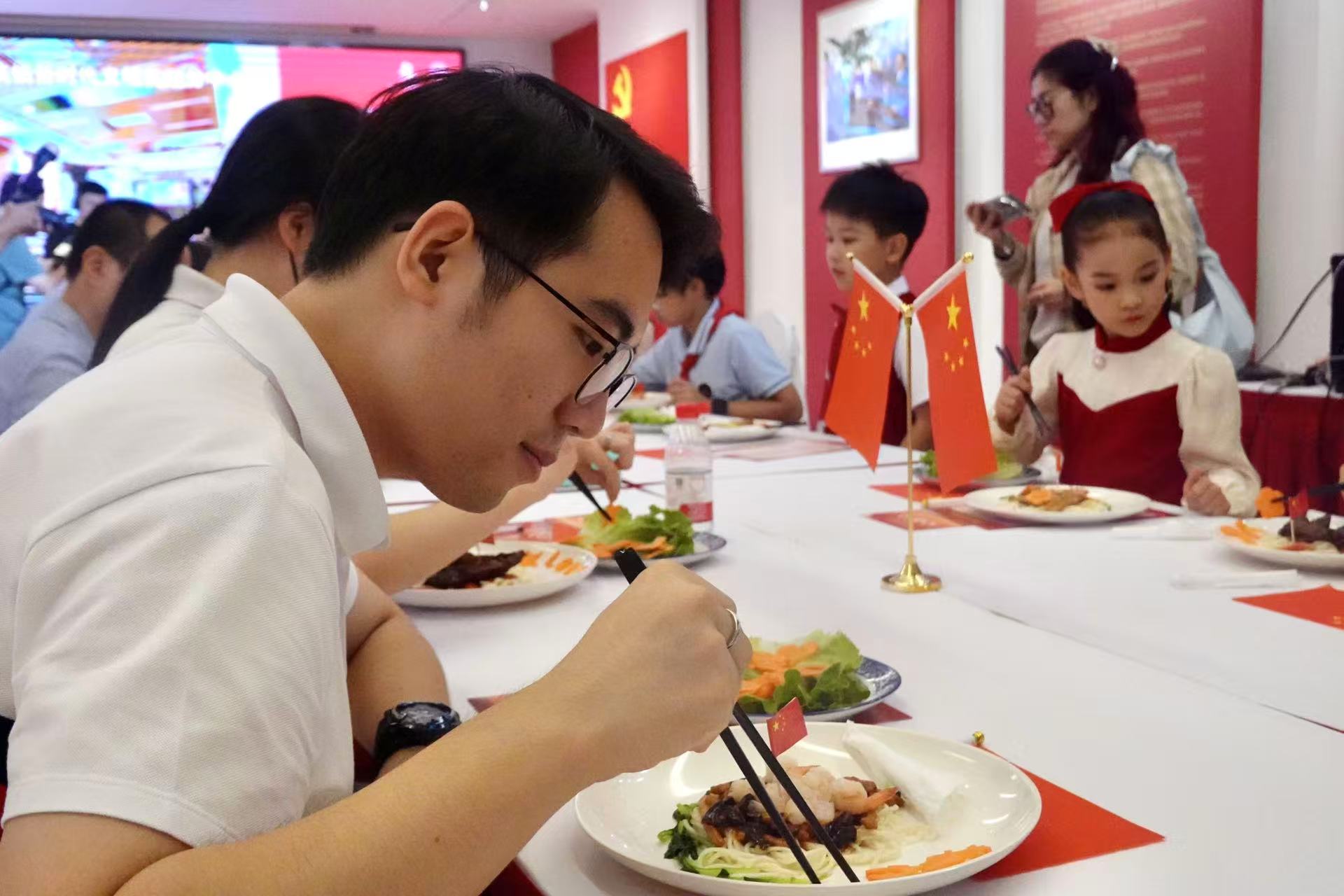 市民代表在吃国庆面。劳动报记者贡俊祺 摄影