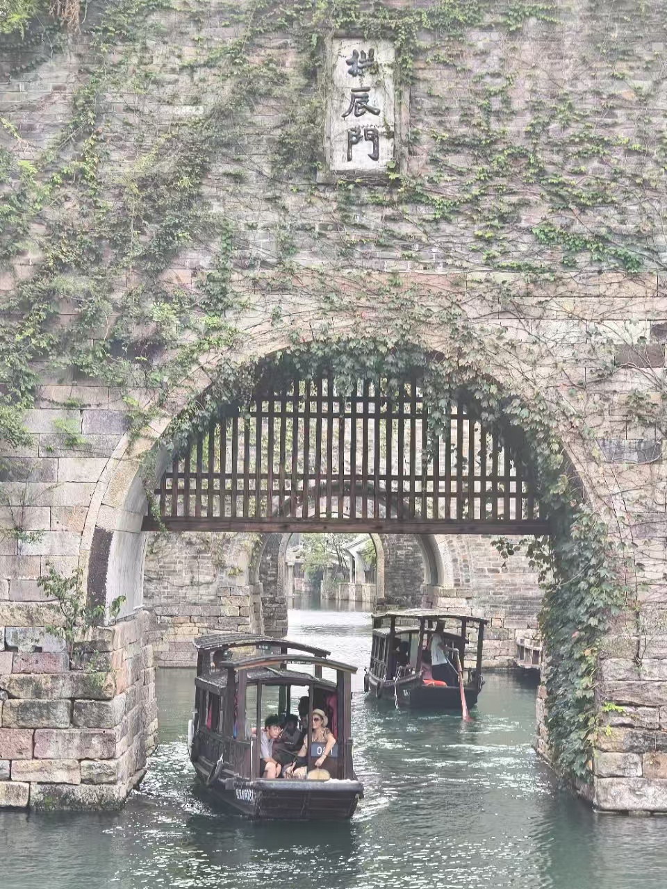 浙江海宁盐官潮乐之城古镇内,游船载着游人穿梭于水巷。劳动报记者徐巍 摄影