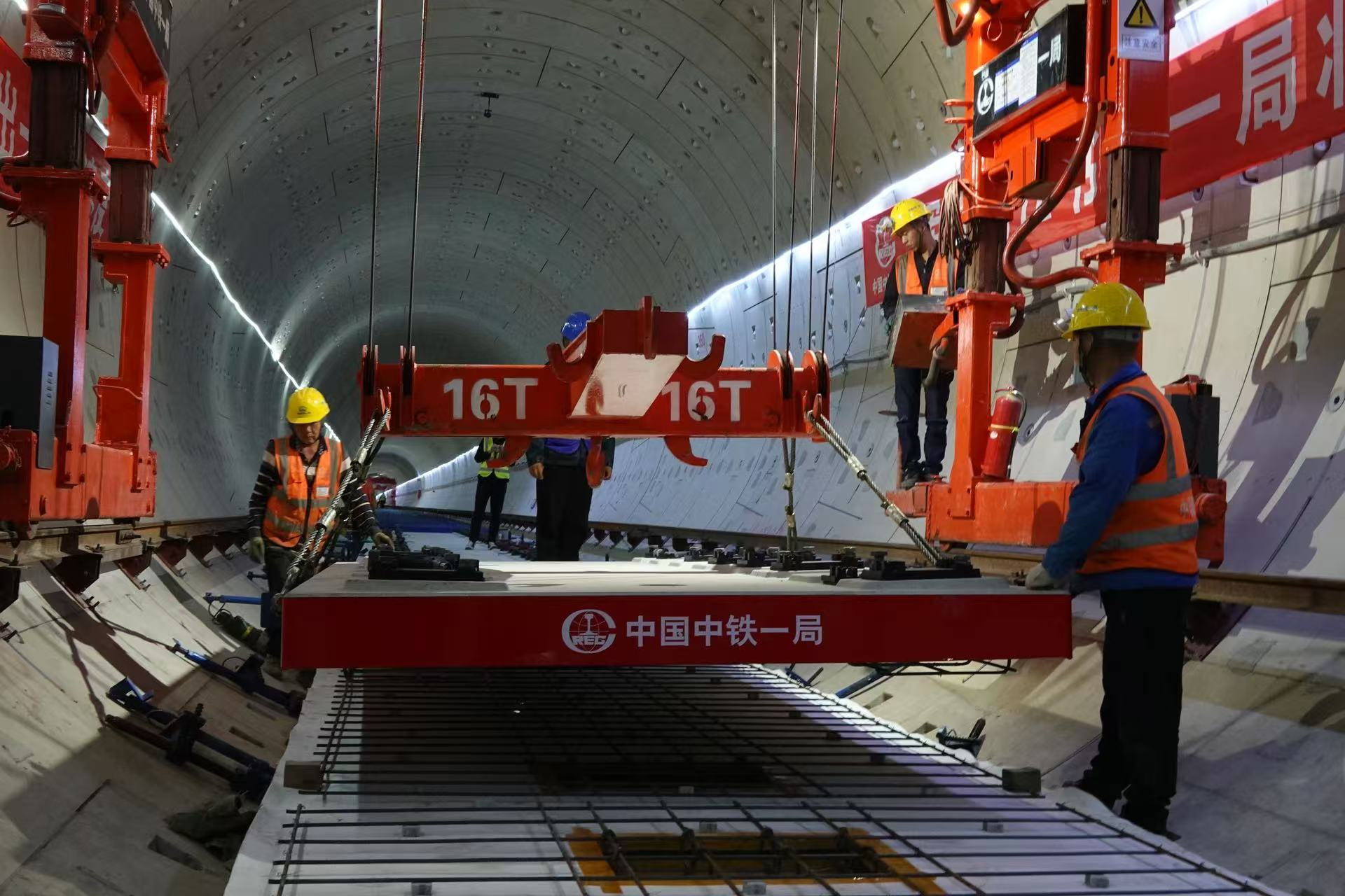 据悉,21号线将大量采用预制轨道板工艺进行轨道铺设,包括普通预制轨道板、预制钢弹簧浮置板、预制道岔板、预制内置泵房板等多种预制板整体道床结构。建设集团第四分公司及各参建单位不断优化施工组织与关键工艺,持续科技创新,依托机械化、智能化铺轨设备,铺轨效率较传统施工方式提升约20%,有力保障了工程建设的优质高效推进。