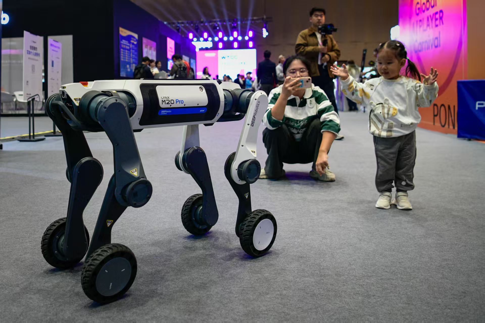 市民与机器狗互动。劳动报记者颜筱依 摄影