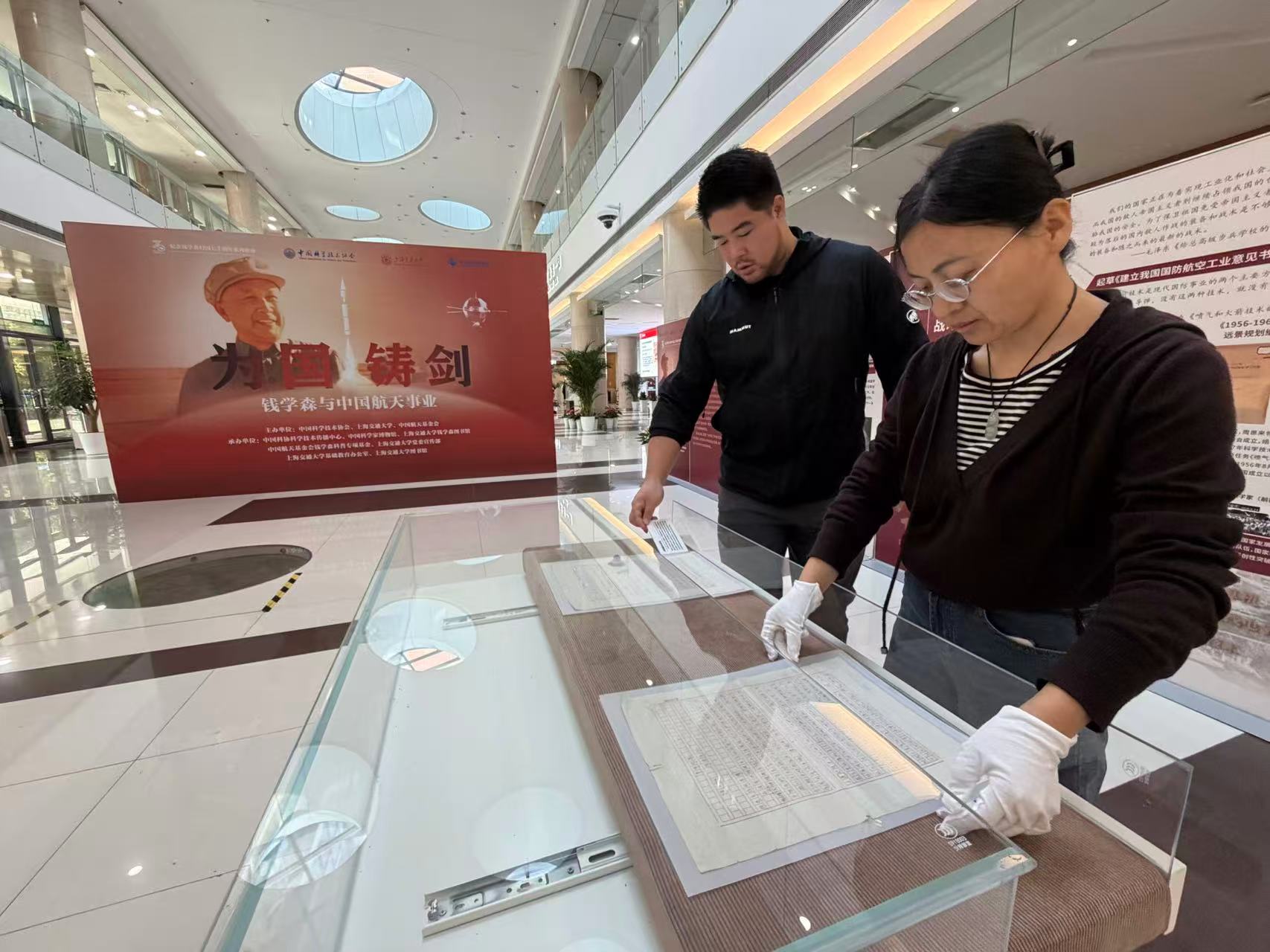 “为国铸剑——钱学森与中国航天事业”展览全国巡展依然分为“战略规划 奠基伟业”“八年四弹 剑指苍穹”“两弹结合 大漠惊雷”“鹰击长空 化剑为盾”“星耀东方 曙光初现”“系统工程 走向未来”六大单元,通过翔实的史料还原钱学森为中国航天与国防科技事业铸就的卓越功勋。现场展出了“1991年钱学森获得的国家杰出贡献科学家证书”“1999年钱学森获得的两弹一星功勋奖章”“1934年钱学森的国立交通大学毕业证书”“1935年钱学森赴美留学前的亲友赠言册”等钱学森图书馆馆藏国家一级文物的仿制件,完整呈现他从毅然归国到主持“两弹一星”研制的奋斗征程。观众可以通过扫码观看《文物有话说》短视频节目,了解国家一级文物背后故事,深刻理解钱学森“党有所呼、我有所应,国有所需、我有所为”的崇高精神风范。