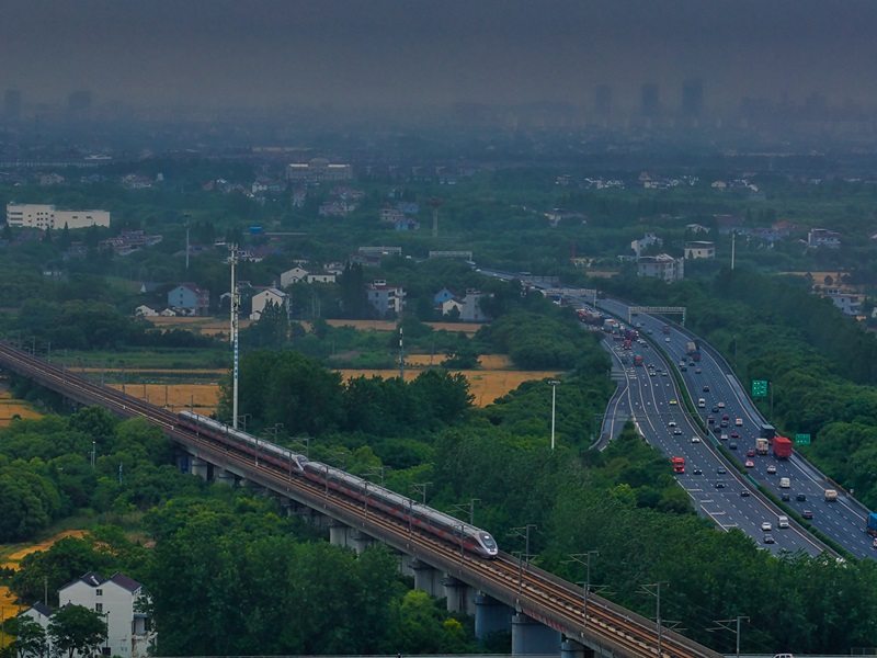 头图为高铁动车在铁轨上飞驰。铁路部门供图