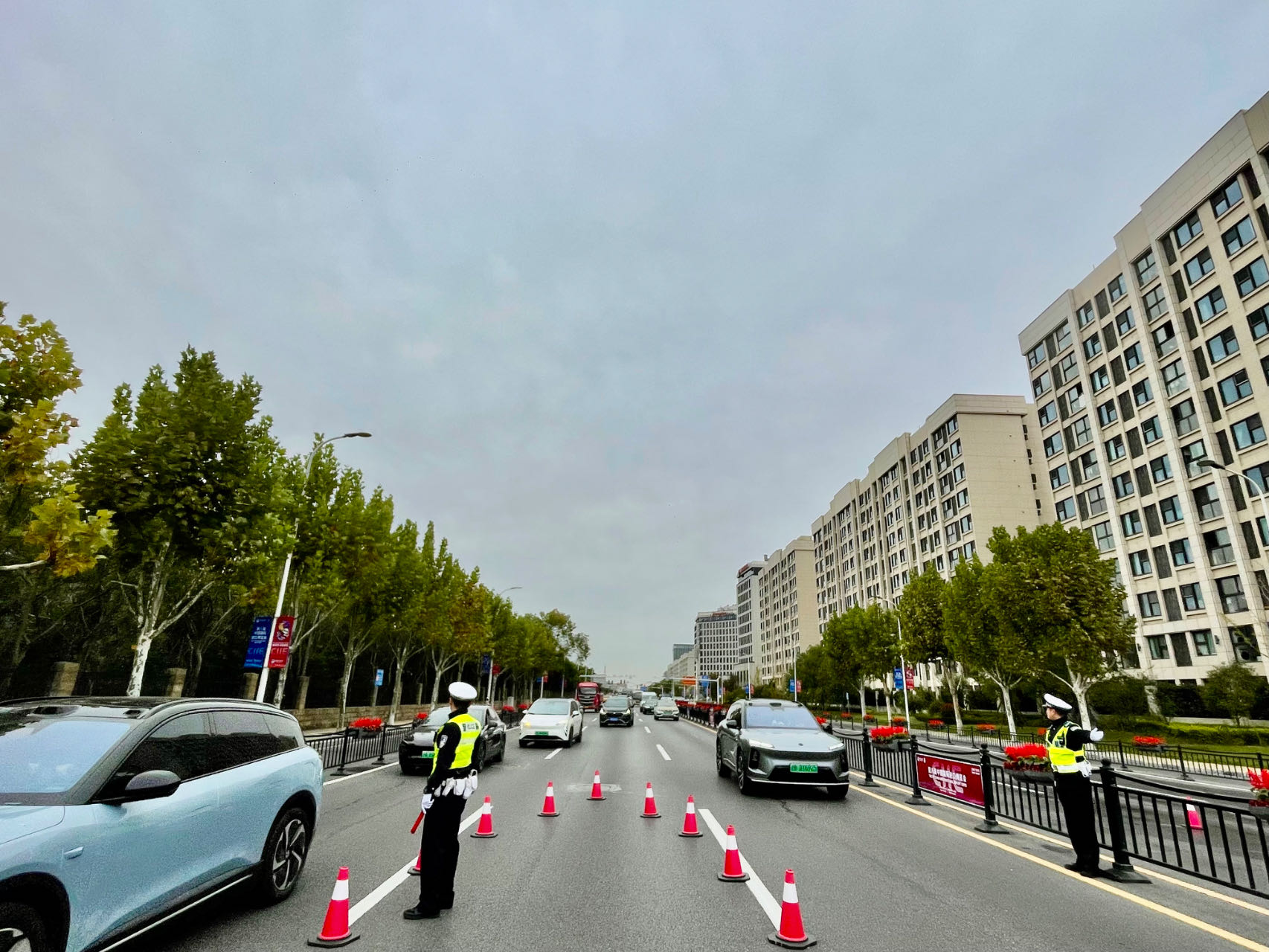记者在现场看到,交通管控区域周边道路竖立了不少指引标识,引导过往车辆有序前行,并且提前设置了预分流点位,进一步保障核心区域周边交通通行顺畅。