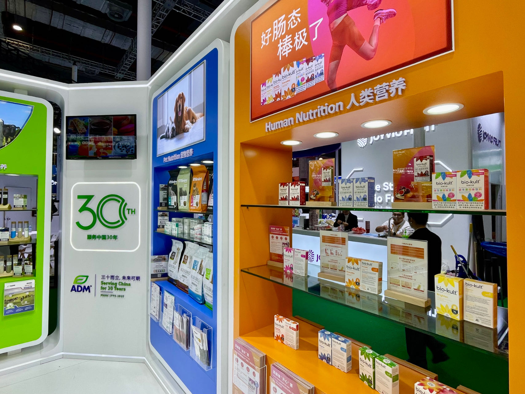 农食品展区81.展馆里,跟肠道健康相关的产品特别吸睛。全球农业与营养企业ADM就带来了两款益生菌产品,其中,一款芽孢型益生菌DE111已于不久前获得中国国家卫生健康委员会批准。因此,ADM也成为了国内首个提供该类枯草芽孢杆菌食品配料的企业。据介绍,该益生菌可在胃内存活并定植于小肠,临床数据显示其对维持肠道菌群多样性、支持代谢健康具有积极作用,且能耐受严苛加工条件,适配饮料、膳食补充剂等多种产品形态。