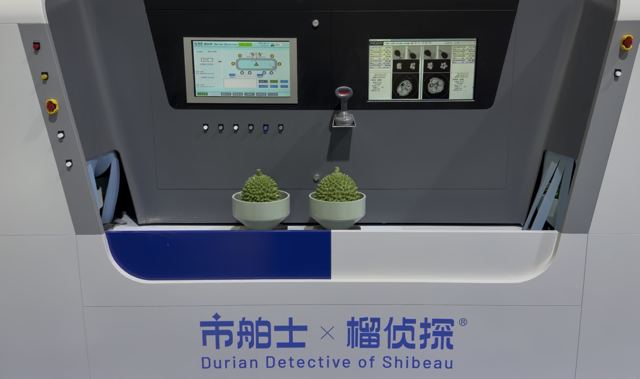 而这一痛点,恰巧是“榴侦探”诞生的初衷。据悉,这款由榴莲品牌“市舶士”自主研发的设备,核心在于搭载了行业首创的无损智检系统,通过低功率射线扫描与AI图像算法结合,实现对榴莲内部的“精准透视”。