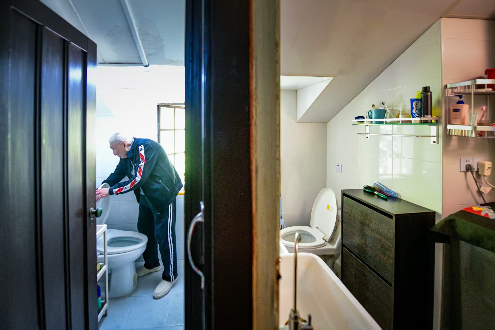 头图为裘宗河用上了新修的卫生间。劳动报记者颜筱依摄影