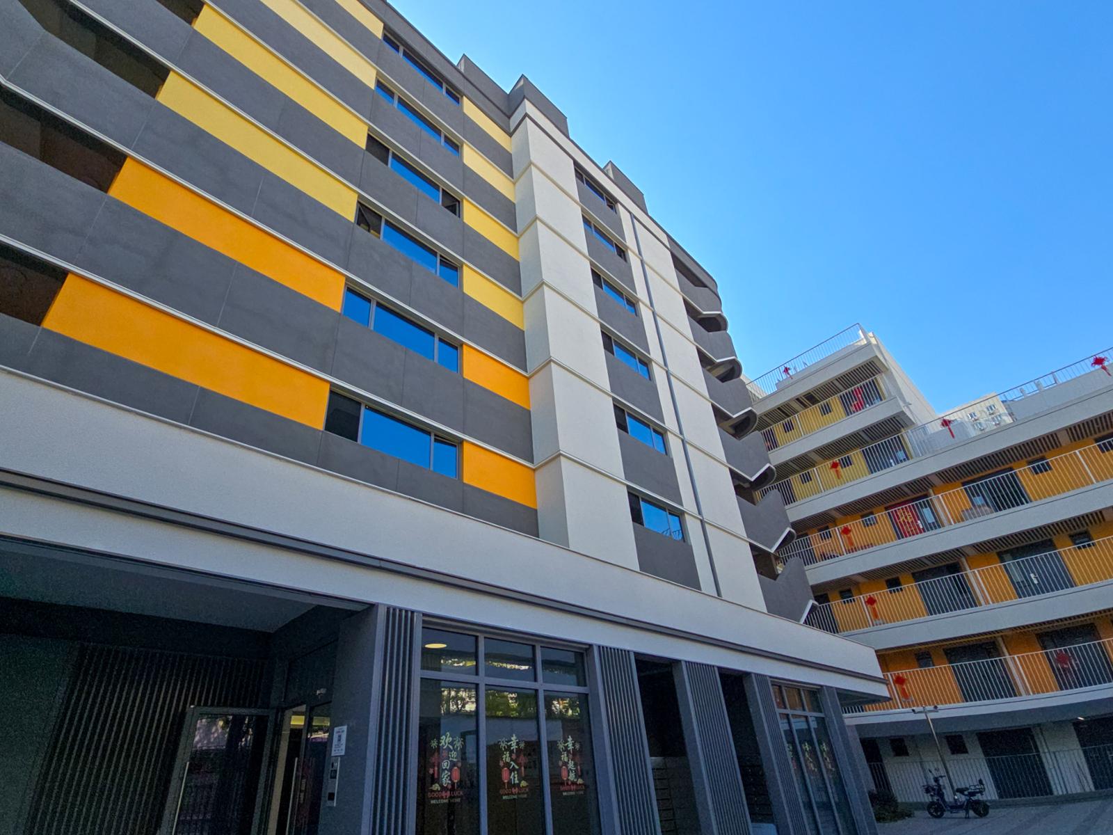 来到徐汇区漕河泾街道漕溪三村,一幢崭新的8层高楼格外亮眼,黄、白、灰色相间的外立面十分清爽。