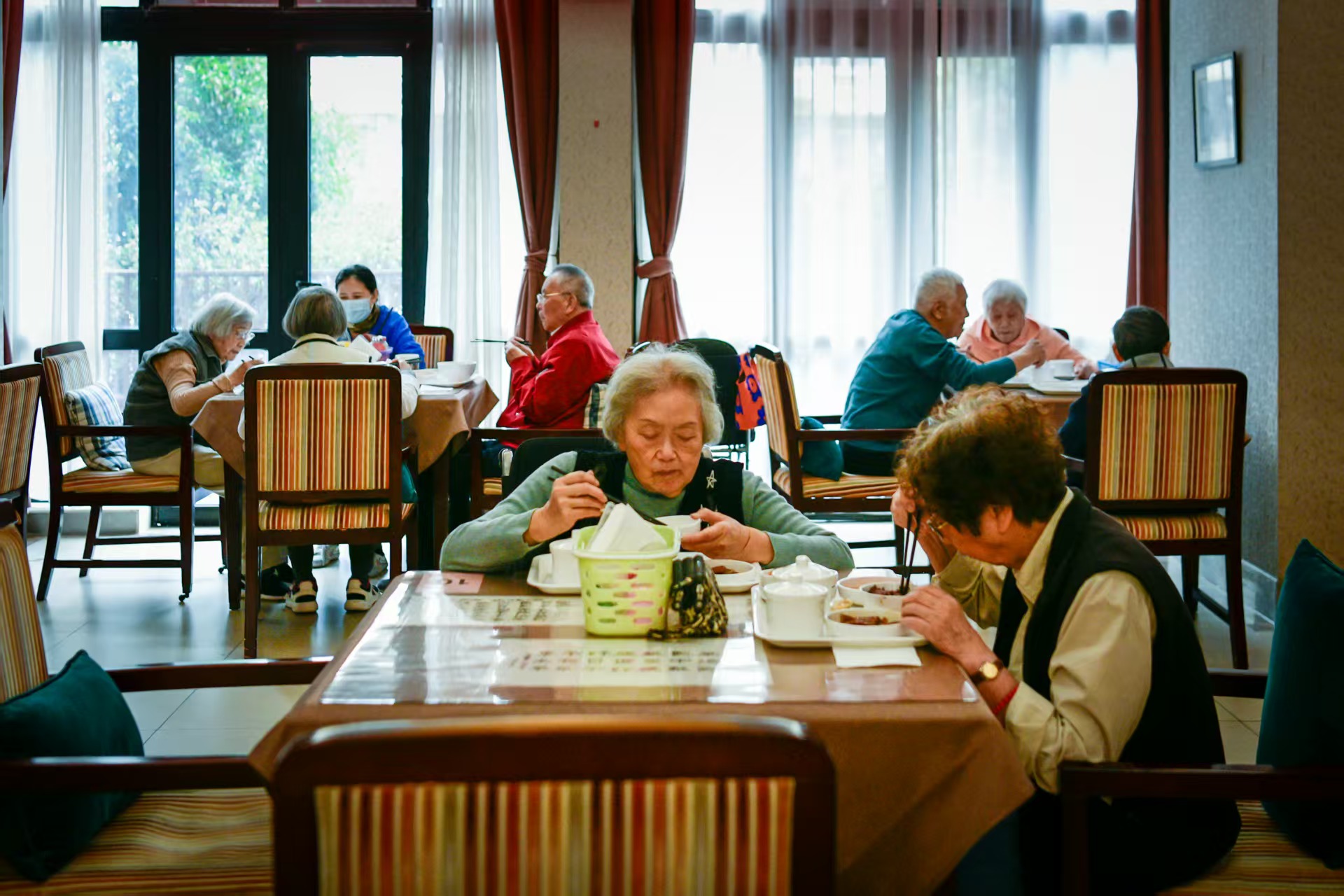 中午时分,遐福养老院的老人们在就餐。劳动报记者颜筱依 摄影