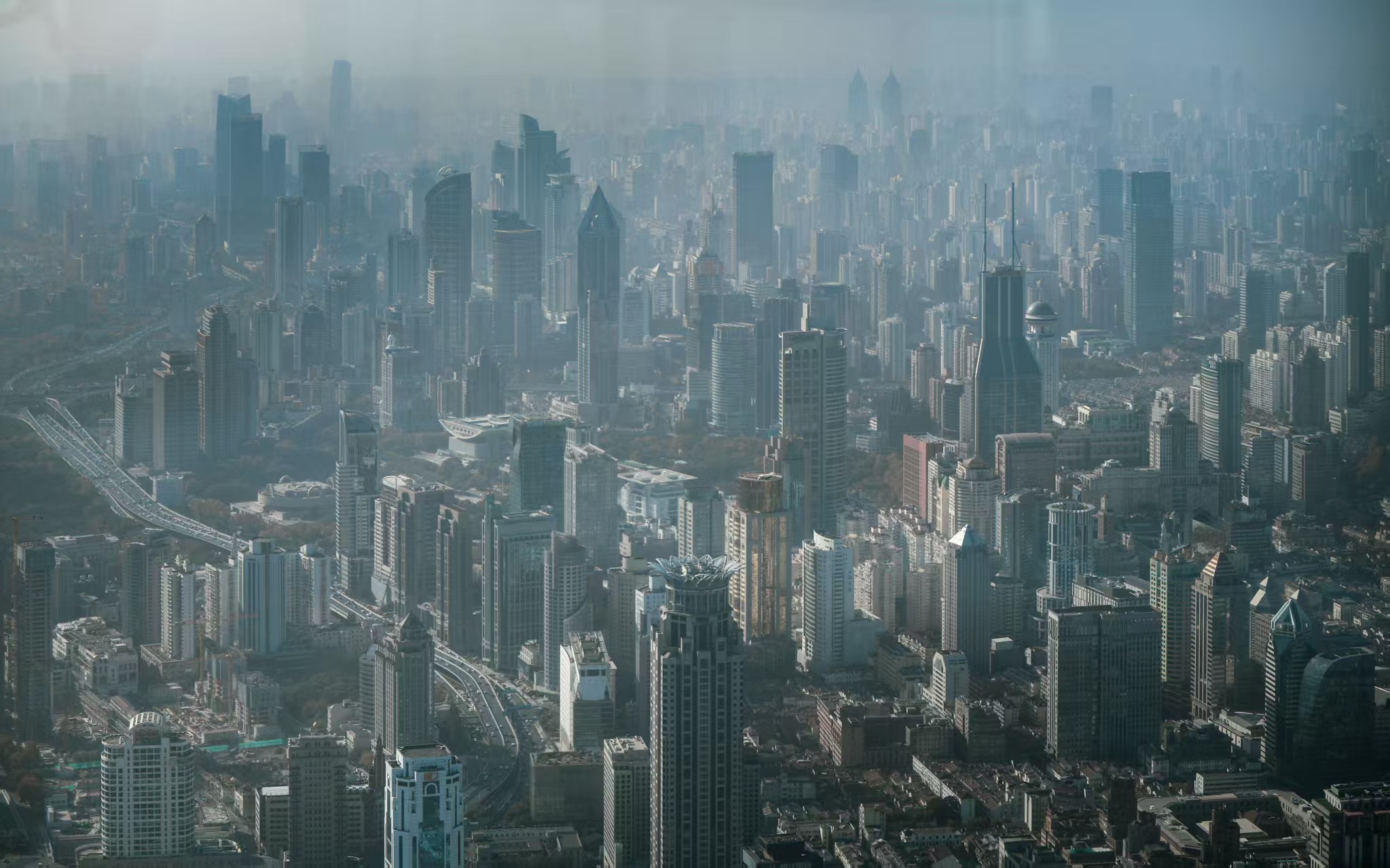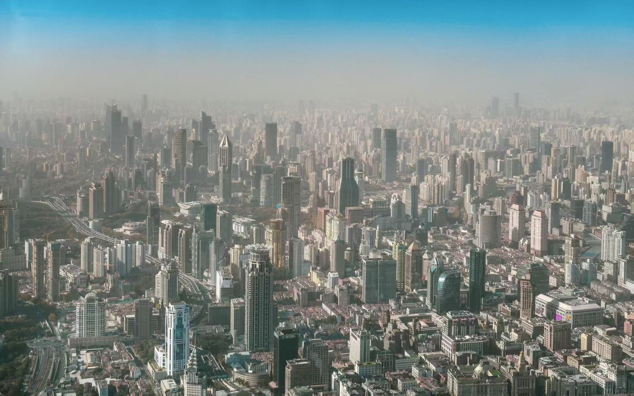 拍摄于上海中心高点,上海雾霾状况严重。劳动报记者颜筱依摄影