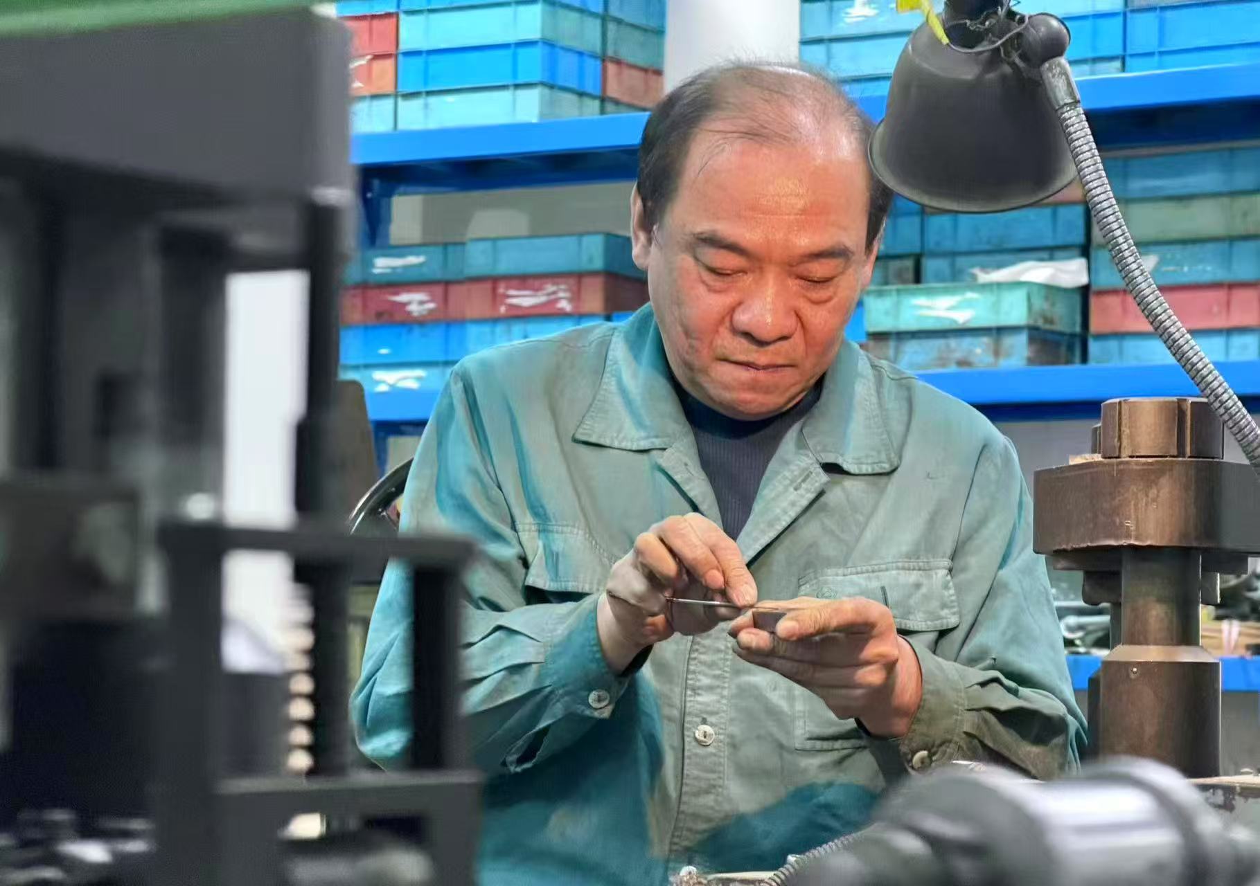 “奋勇争先从来不是一个人的冲锋,而是一群人的接力。”作为技术带头人,刘根敏始终把传承手艺当作重要责任。他先后带教数十名徒弟,坚守“先教做人,再教手艺;先练实干,再求争先”的原则。他把早年磨坏的三百多枚笔尖当“教具”,讲解报废原因;让徒弟先练“稳劲”,再接触模具;对想转行的年轻徒弟,他亲自陪伴打磨,直到对方磨出第一枚合格笔尖。