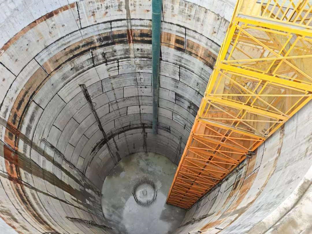 “这个竖井垂直度的控制是一个施工难点。”项目经理杨勇告诉记者,由于其是悬吊结构,在开挖后需要通过吊机吊起后再往下沉,在此过程中,必须控制垂直度不偏离。