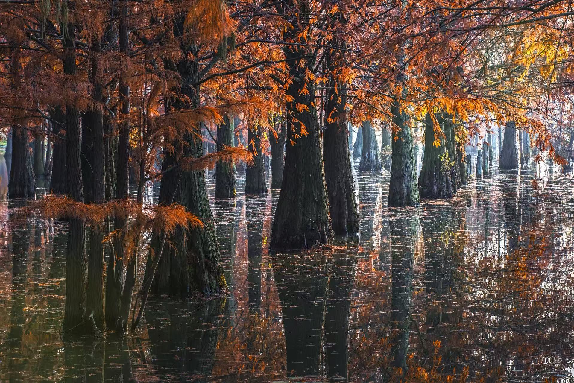 水上森林风景照近两日在社交平台走热。12月8日小红书截图
