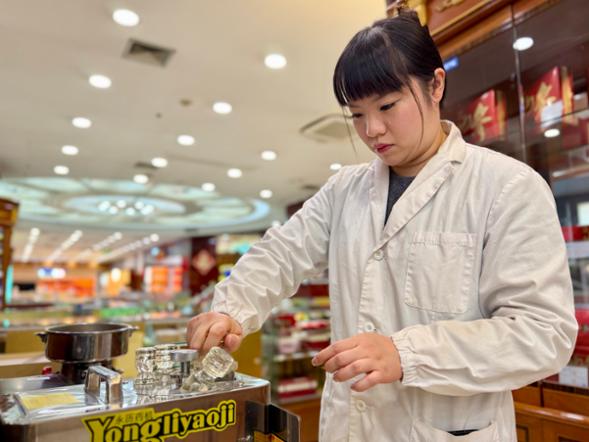 贴士:冬令迎来滋补热潮,沪上中医药店铺多以道地品质、贴心服务与专业中医诊疗相结合,为上海市民“冬令养生”提供便民服务。通常,购买品牌阿胶后,多会赠送辅料,帮助顾客免费熬胶制糕。也有部分店铺会收取少量辅料费或加工费。门店根据顾客购买情况,分批依次熬制。而市场上在售的成品膏剂则以罐装销售、部分为独立条状小包装,价格相对平价亲民,也方便食用。