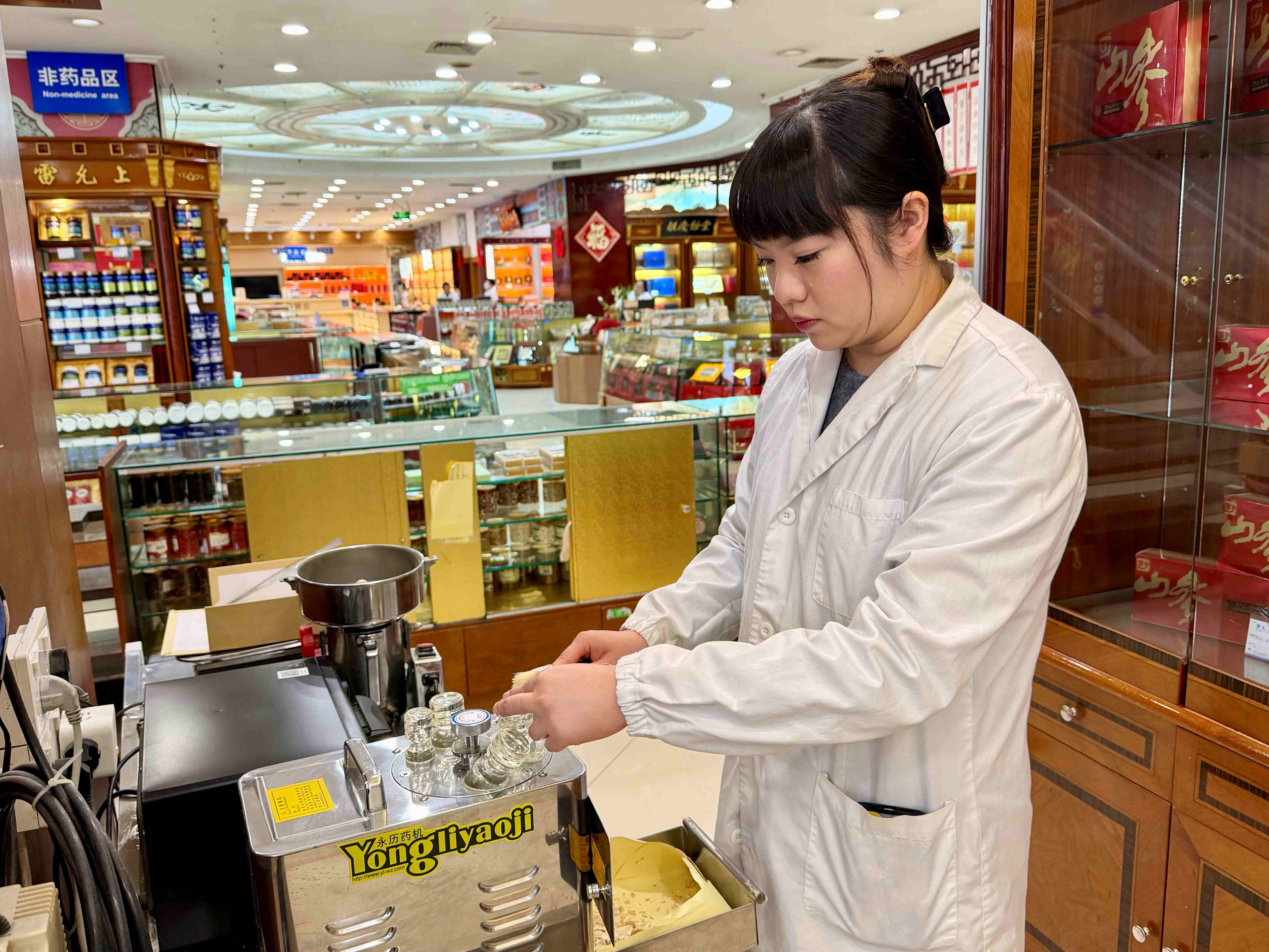头图:雷允上药城提供现场切片和打粉服务。劳动报记者贡俊祺 摄影