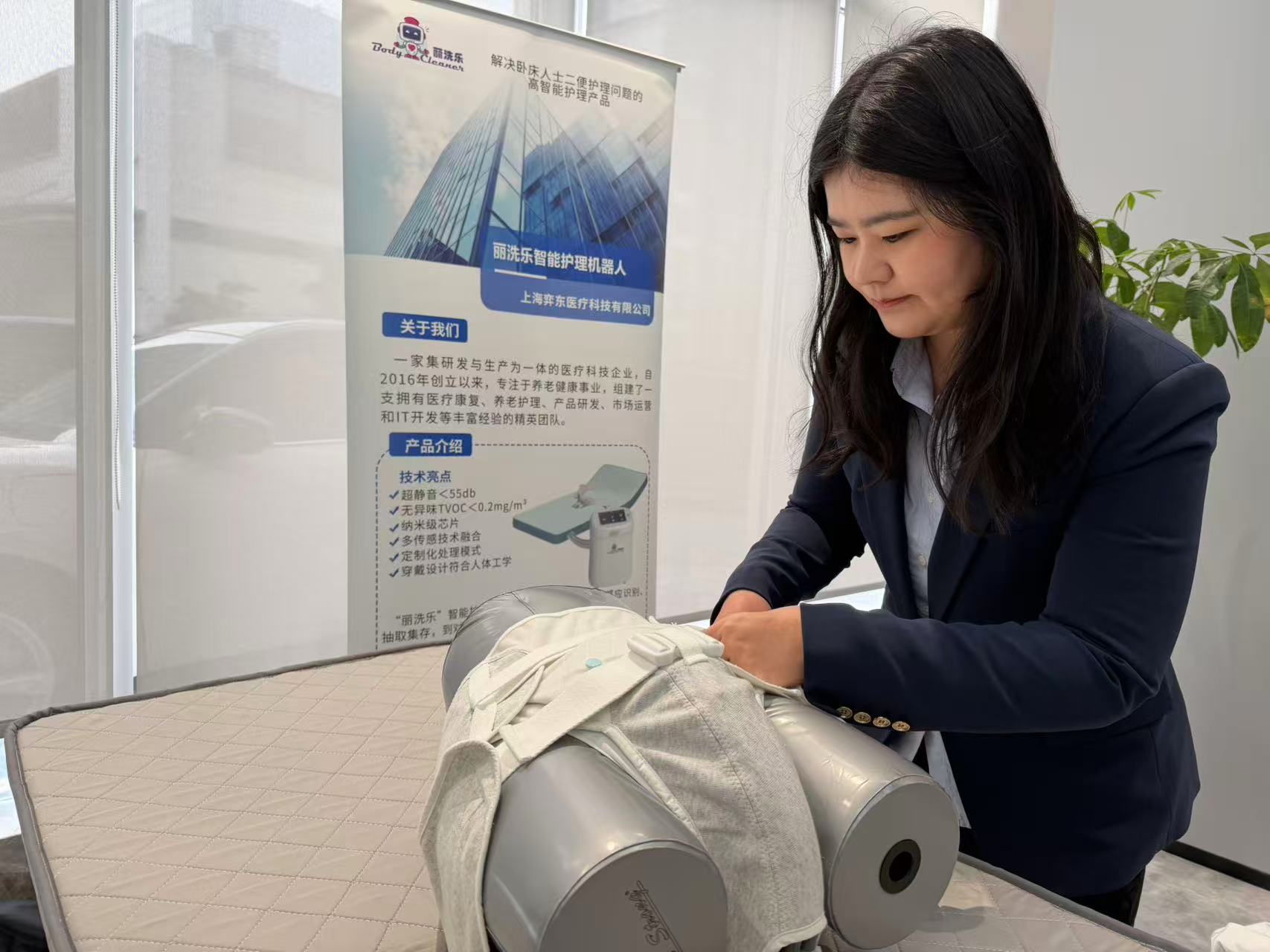 企业市场部负责人小陈向记者介绍:“我们的产品经过三年5期临床验证,并非实验室产物,最长已服务老人一年半,能稳定使用3个月以上。”产品由功能床垫、智能穿戴设备及功能主机三部分组成,照护者每日仅需补充一次清水、倾倒一次污水,即可满足老人全天使用需求。目前,该机器人已纳入上海辅具租赁目录,三个月租赁价2160元,用户还能享受专属补贴政策。