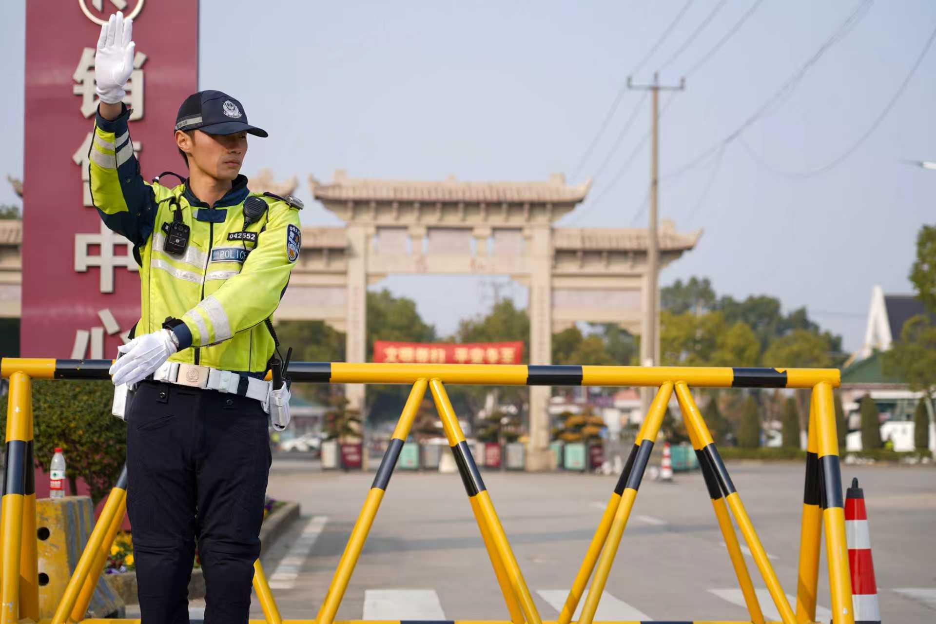 民警公安民警正在仙鹤墓园停车场疏导车流。闵行公安供图