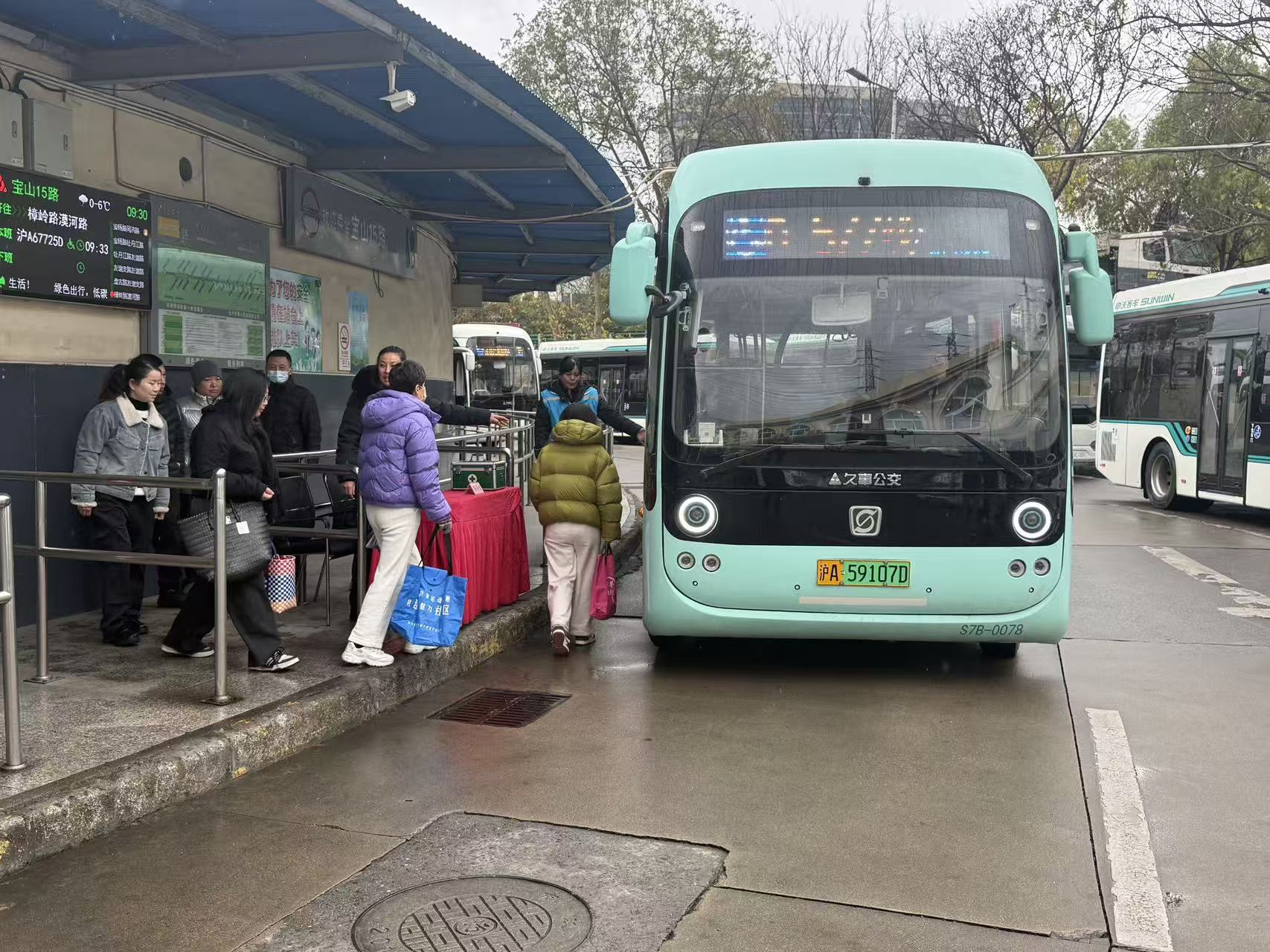 开线首日,巴士五公司十一车队在泰和路蕰川路终点站及江杨水产品批发市场门口设立志愿服务点。志愿者与工作人员现场提供线路咨询、乘车引导与秩序维护,保障乘客安全有序出行,众多市民在体验后表示“暖心”“方便”。