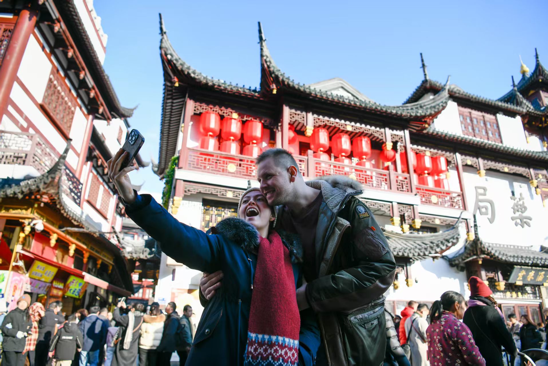 外国夫妇畅游豫园。劳动报记者 颜筱依 摄影