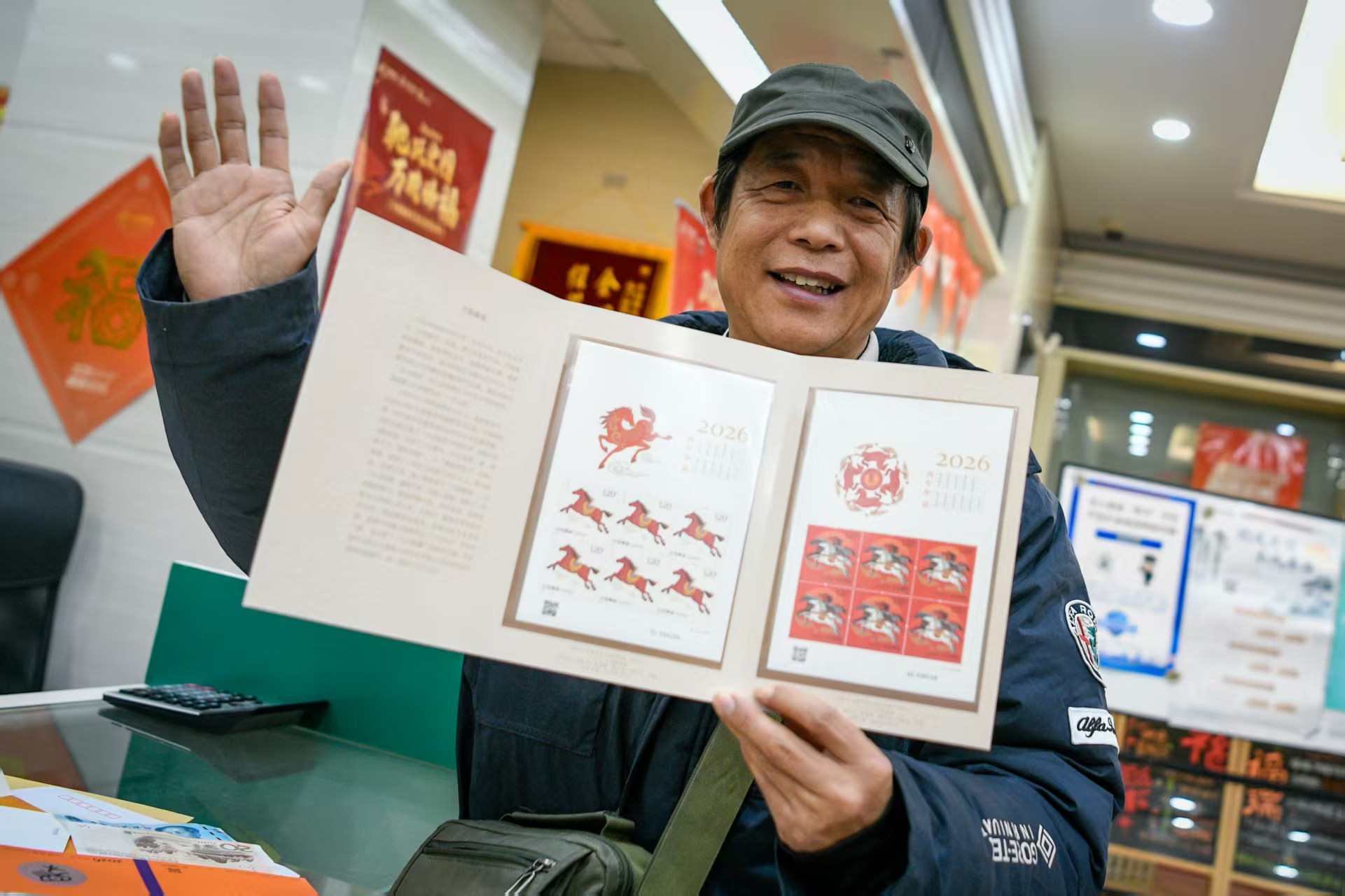 1月5日,中国邮政发行《丙午年》特种邮票一套2枚。第一枚名为“驰跃宏图”,展现出“一马当先”的开拓气概;第二枚名为“万骏臻福”,诠释出“万马奔腾”的团结力量。当日凌晨5点30分,记者来到龙门路邮政支局马年生肖邮票发售现场,探访邮迷们一年一度的殷切期待。