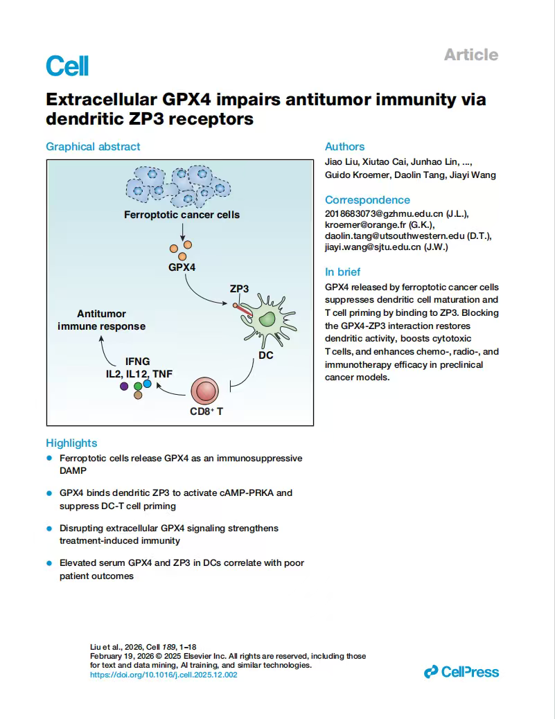 日前,上海市胸科医院基础医学研究中心主任、检验科主任兼输血科主任王佳谊领衔,联合海内外多家研究团队,在国际顶级学术期刊《细胞》(Cell)发表最新研究成果。研究揭示了一种此前被忽视的肿瘤细胞死亡机制对免疫系统的影响,并提出了破解肿瘤免疫治疗困境的全新思路。