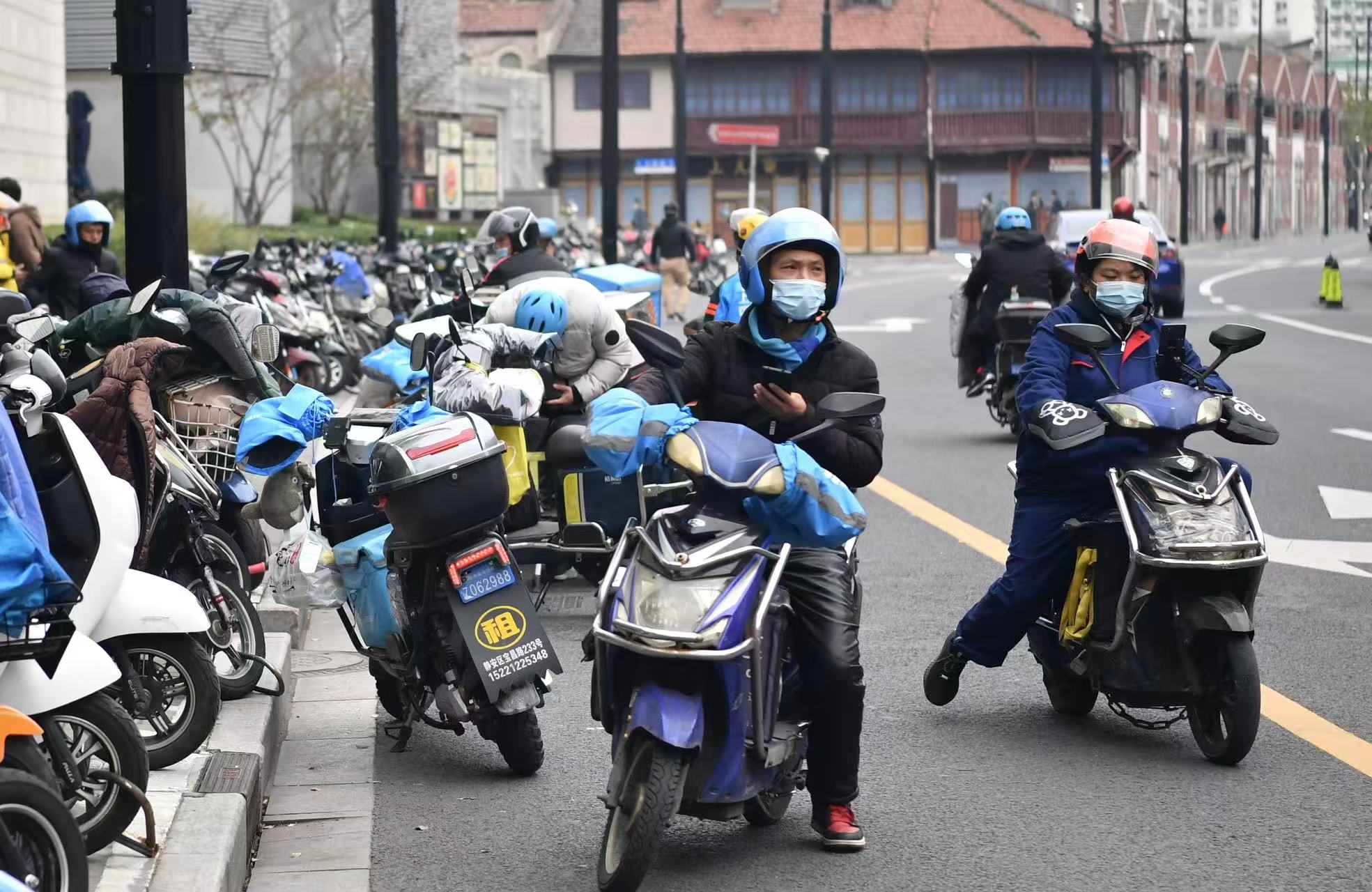 图为上海的外卖员。劳动报记者贡俊祺 摄影
