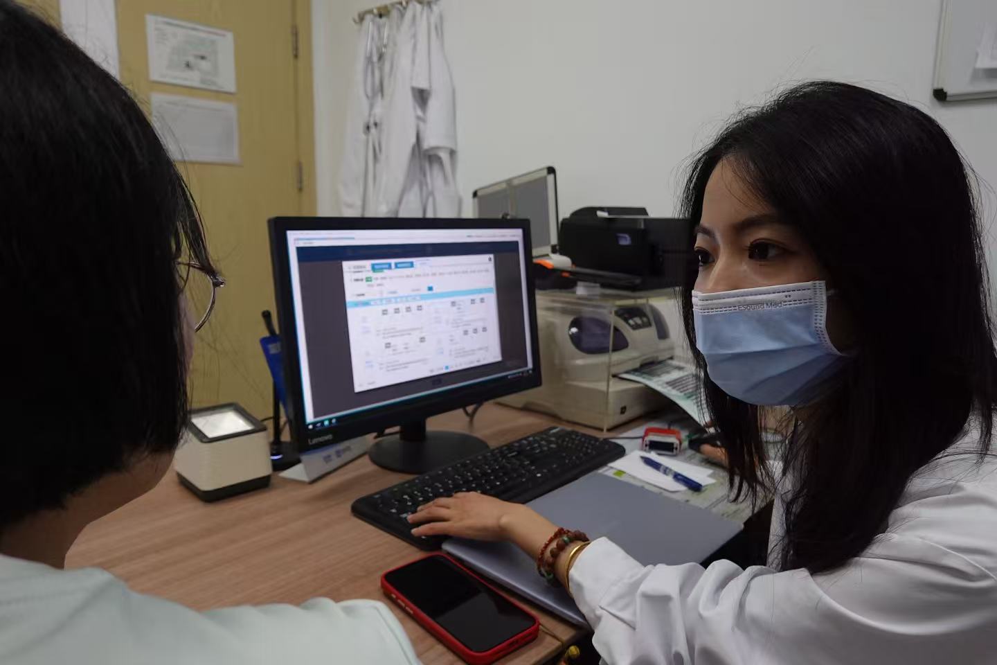 社区医院医生正在为病人看病。劳动报记者贡俊祺 摄影